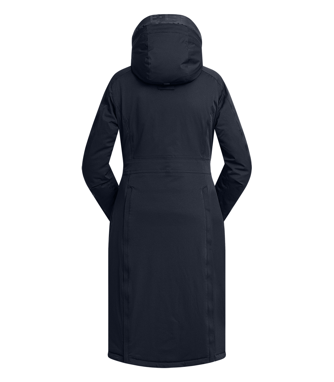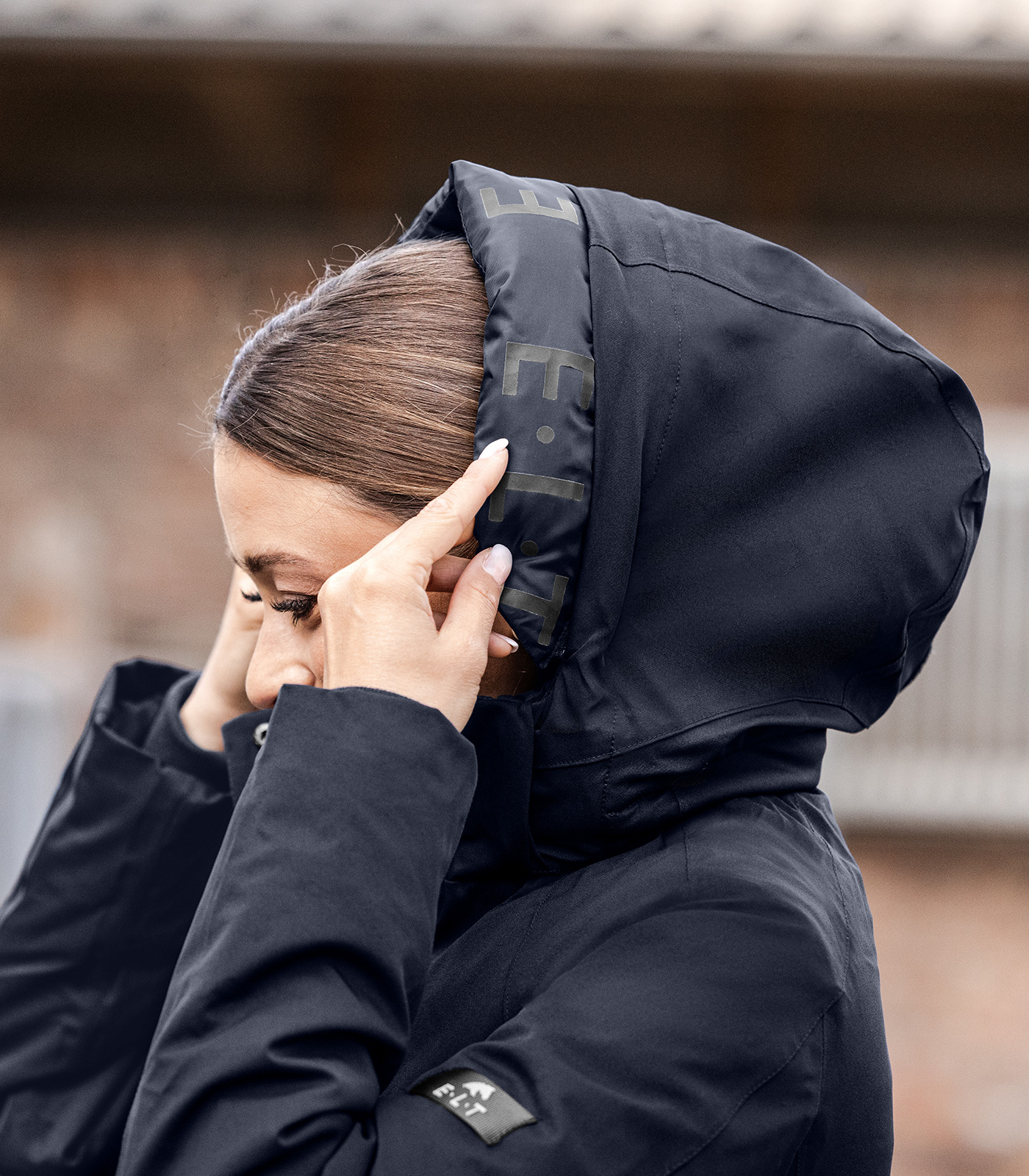 Abrigo de equitación de invierno muy funcional con un amplio equipamiento – Corte ligeramente entallado – Ancho ajustable en la cintura – Acolchado integral – Costuras selladas – Impermeable, columna de agua de 5000 mm) – Material transpirable, 3000 g/m²/24 h – Cortavientos – Capucha desmontable con visera acolchada con letras «E·L·T» reflectantes – Capucha ajustable y fijable en la espalda – Visera desmontable de la capucha – Cuello que se cierra hasta arriba – Bolsillo en el pecho con cremallera impermeable con tirador semibloqueante y letras «E·L·T Equestrian Performance» – Cremallera bidireccional de alta calidad con aspecto metálico y protector de barbilla – Tirador de cremallera metálico con cinta acanalada con logotipo en 3D – La cremallera termina por encima de la silla de montar para proteger el cuero – Dos grandes bolsillos con solapa y botones a presión y forro polar calientamanos. Bolsillo derecho con letras «E·L·T Equestrian Performance» – Separación de la cintura con pretina tipo túnel y banda acanalada con botones de presión para ajustar el ancho – Extremos de las mangas con puños de canalé en el interior – Tapeta delantera encolada y con botones de presión ocultos – Correas interiores para las piernas, ajustables con botones a presión – Estampado reflectante en las mangas – Insignia decorativa de grogrén con logotipo «E·L·T» estampado de silicona – Rajas para montar con cremallera y tirador semibloqueante con letras «E·L·T» – Rajas para montar en el interior con estampado reflectante del logotipo «E·L·T» a la izquierda y letras de «E·L·T Equestrian Performance» a la derecha. Material superior: 90 % poliamida, 10 % elastano – Forro: 100 % poliéster – Acolchado: 100 % poliéster