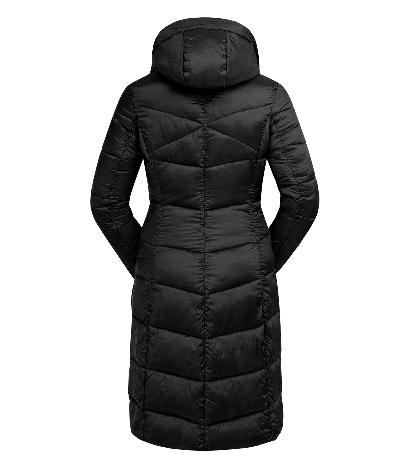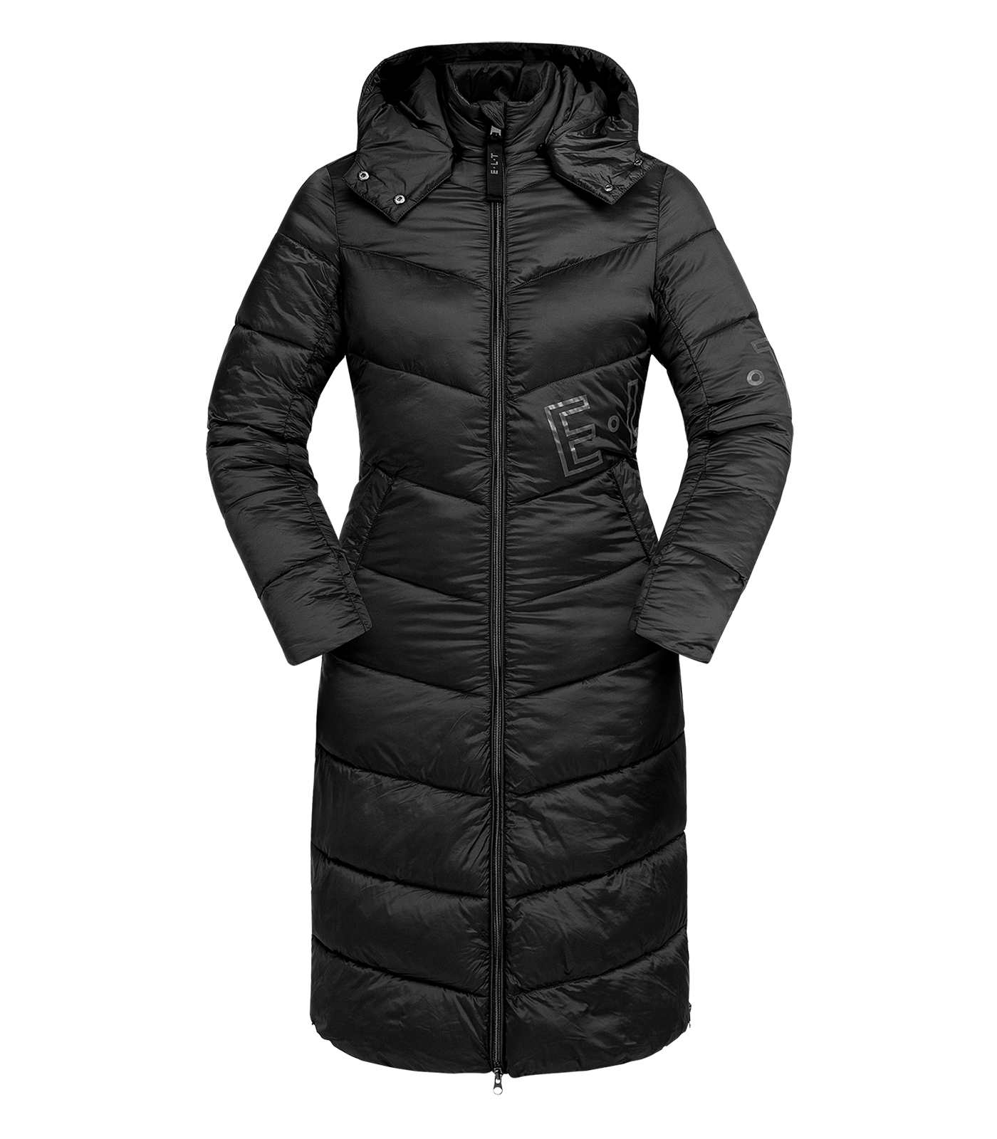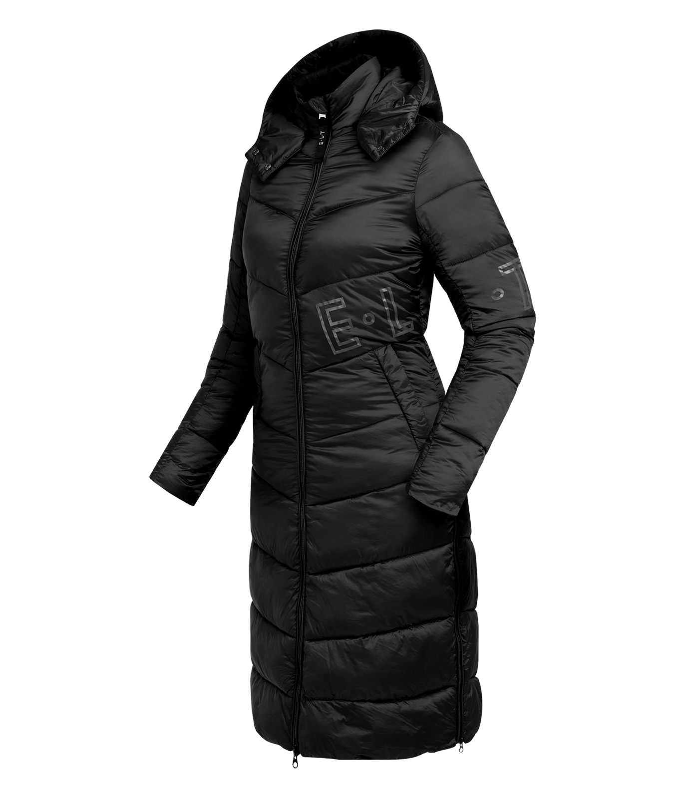 Abrigo largo acolchado con relleno cálido, ultraligero – Corte entallado – Acolchado ligero tipo plumón – Repele el viento – Material de aspecto ligeramente brillante – Capucha desmontable que puede cerrarse con botones automáticos y fijarse en la espalda – Cuello alto – Cremallera bidireccional de alta calidad con aspecto metálico y protector de barbilla – Tirador de cremallera metálico con cinta acanalada y logotipo en 3D – Tapeta delantera interior con cinta de punto decorativa y logotipo estampado – Bolsillos laterales con cremallera y tirador metálico de alta calidad – Aberturas laterales de equitación con cremallera de alta calidad y aspecto metálico – Acabado interior acolchado de alta calidad con costuras ribeteadas – Letras E·L·T en la parte delantera Material exterior: 100 % poliamida, forro: 100 % poliamida, guata: 100 % poliéster