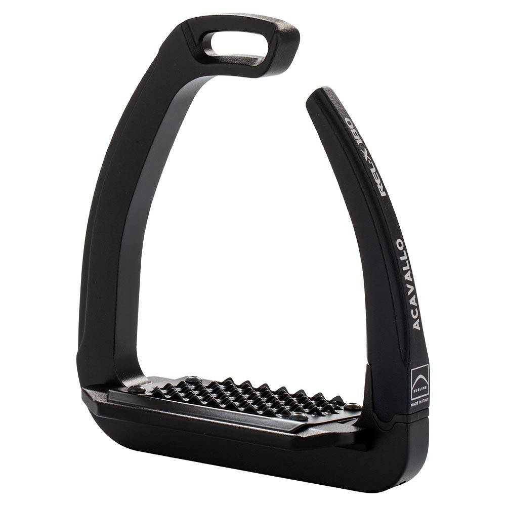 Acavallo Stirrups REL-X 180, • Mecanismo de seguridad con bisagras bidireccionales • Soltótico pero flexible para una comodidad óptima • Semana de acero inoxidable con la información del producto anti-deslizamiento Descripción de la información del producto: los Rel-X 180 de Acavallo ofrecen un comodidad óptima y una posición estable del pie . El metal resistente y de alta tecnología combinado con polímeros flexibles ofrece resistencia y rigidez reducida. El mecanismo de seguridad con bisagras permite que la rama se mueva 180 grados hacia adelante y hacia atrás y 90 grados hacia afuera. El peso del piloto asegura que la bisagra se abra en caso de caída. Esto evita que el pie quede atrapado en el estribo. Por lo tanto, los estribos avanzan, hacia atrás y de lado en caso de caída. Características del producto: Los estribos se han desarrollado de manera avanzada y técnica. Duran mucho tiempo y ofrecen la comodidad óptima del pie y una posición firme en el pie. La banda de rodadura está hecha de acero inoxidable y tiene un patrón que no se desliza para garantizar que su pie no se deslice y para evitar que la suciedad se acumule. La banda de rodadura está ligeramente angulada (5%), para mantener el talón bajo para una posición de pie cómoda. Los estribos son livianos (519 g), pero extremadamente resistentes.