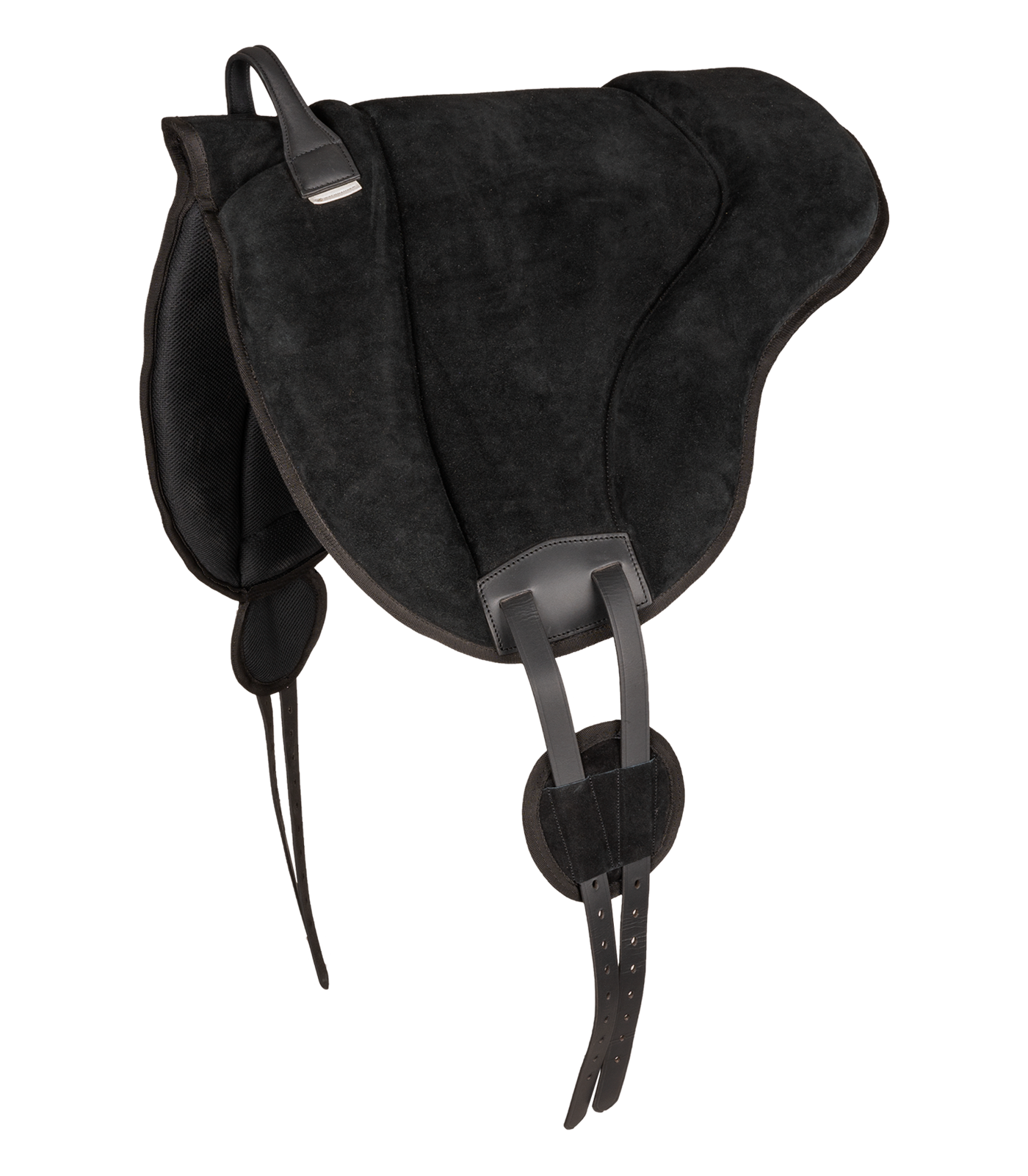Almohadilla de equitación anatómica de piel de ante y con asidero de piel que garantizan una sujeción particularmente segura. El acolchado de espuma de alto espesor es resistente a la presión, absorbe los golpes y ofrece, al mismo tiempo, un efecto antideslizante. Esta almohadilla de equitación ofrece máximo confort sobre la espalda del caballo pues dispone de un suave acolchado y libertad en la zona de la cruz del caballo. Superficie de apoyo: WB: 58 cm, Poni: 45 cm Superficie de asiento, medido en recto: WB: 27 cm, Poni: 22 cm
