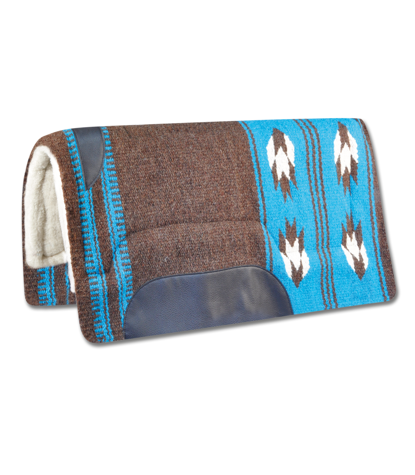 Mantilla para sillas de montar Western de excelente calidad en mezcla de lana con almohadilla de pelo sintético con forma anatómica. Exterior: 60 % lana, 40 % poliéster Almohadilla de pelaje: 50 % poliacrilo, 31 % poliéster, 8 % lana, 5,8 % poliamida, 5,2 % algodón Medidas: 86 x 87 cm