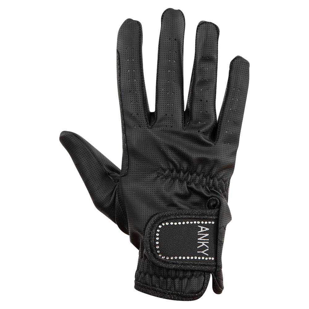 Anky Competition Gloves Drinestone ATA20001, estos elegantes guantes de la competencia están hechos de cuero de imitación perforada con agujeros de ventilación en los dedos. Los guantes se terminan elegantemente con una tubería de contraste llamativa alrededor de la parte inferior y el cierre de velcro. Además, el cierre de velcro está decorado con diamantes de imitación. Instrucciones y garantía de lavado: los guantes son lavables a la máquina a 30º. No use suavizante de telas. Cierre el velcro antes de lavar y/o use una bolsa de lavandería separada. Secia los guantes húmedos plano o cuélguelos en un área ventilada. No los sece en la secadora. La garantía de los guantes es de 1 año y se aplica a los errores de material, costura y fábrica. Los rastros de desgaste no están cubiertos por la garantía. Especialmente el uso de riendas antideslizantes ásperas, cuerdas halter y líneas de lámites asegura una vida útil más corta.