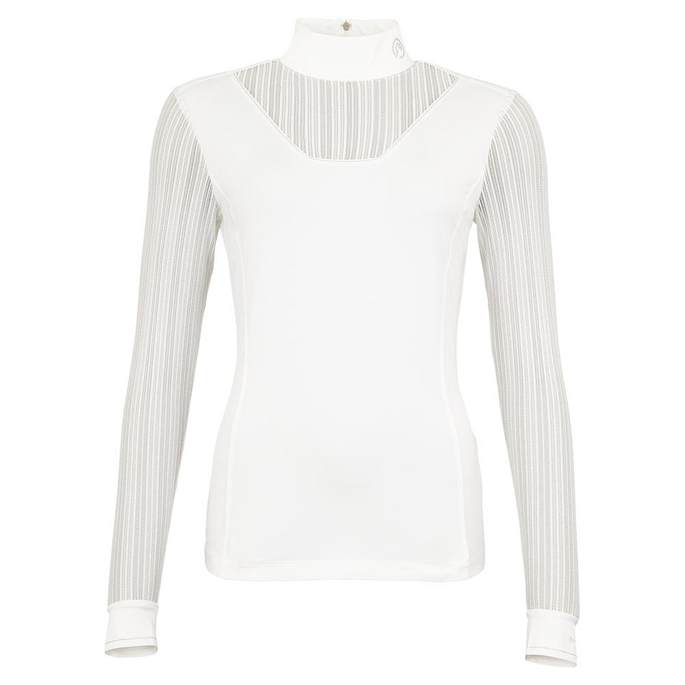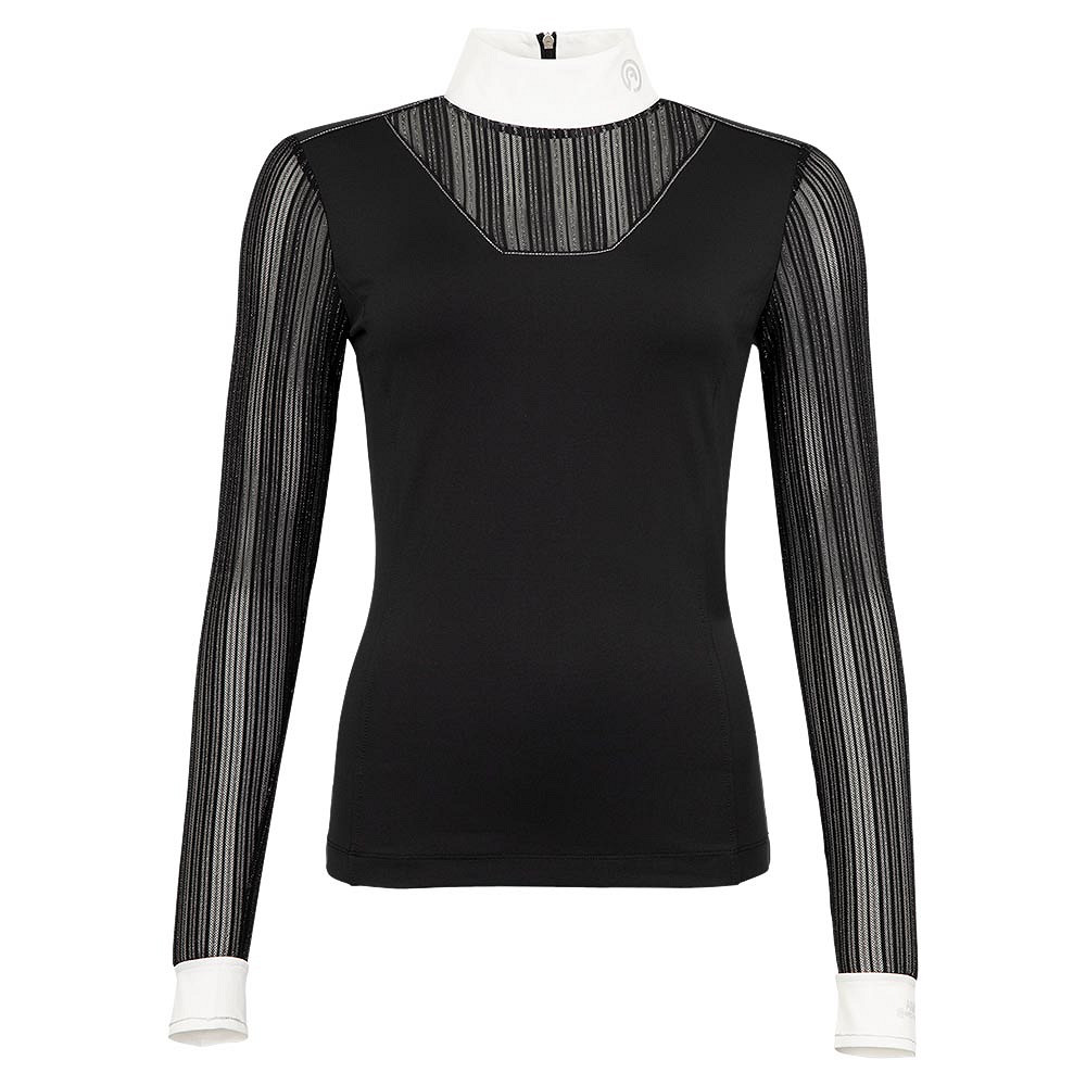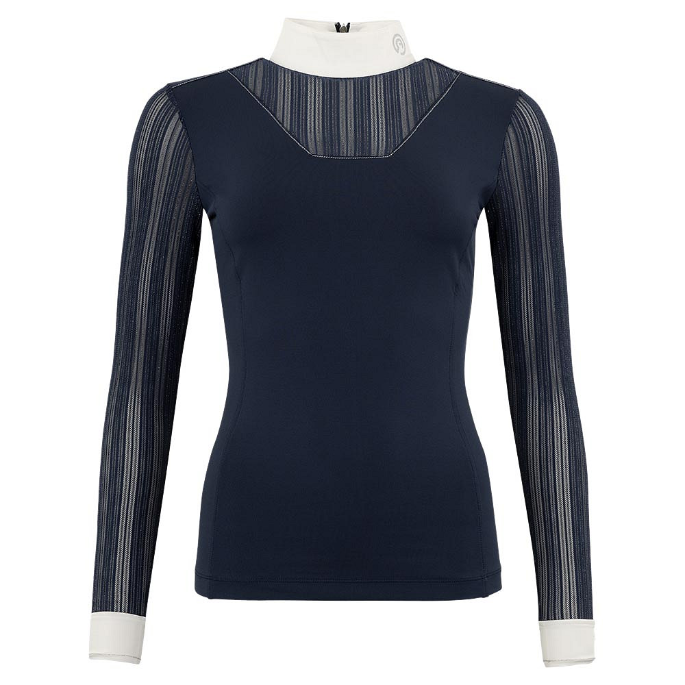 Anky Longsleeve Shirt Mesh ATP20201, esta camisa de competencia aireada y estirable tiene mangas largas hechas de malla transpirable. El material de malla cuenta con un elegante patrón de franja de brillo y también se encuentra en la parte delantera. La cremallera oculta en la parte posterior, la costura plateada y el logotipo de Anky en el cuello de pie termina esta camisa de una manera elegante.