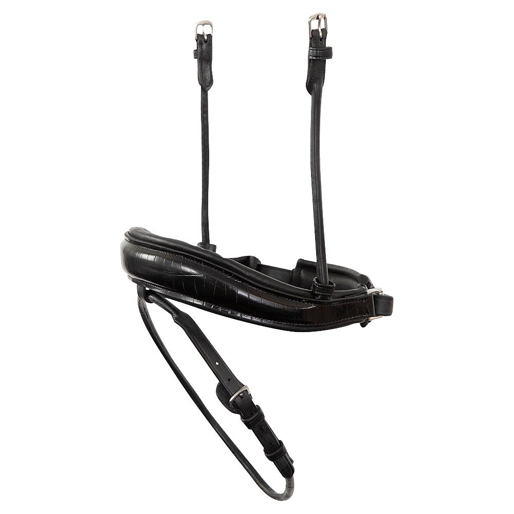 Anky Croco Ath20001, esta banda de nariz flash de manivela con estampado de coco de coco tiene forma anatómica. Se eleva redondo con acolchado suave y tiene una almohadilla de barbilla ancha con relleno suave. La banda nasal ha sido especialmente diseñada para acomodar los pómulos y los nervios faciales sensibles del caballo. El diseño también reduce la presión sobre los dientes de los caballos. Cuenta con pómulos enrollados y la hebilla de la correa de flash tiene una aleta protectora.