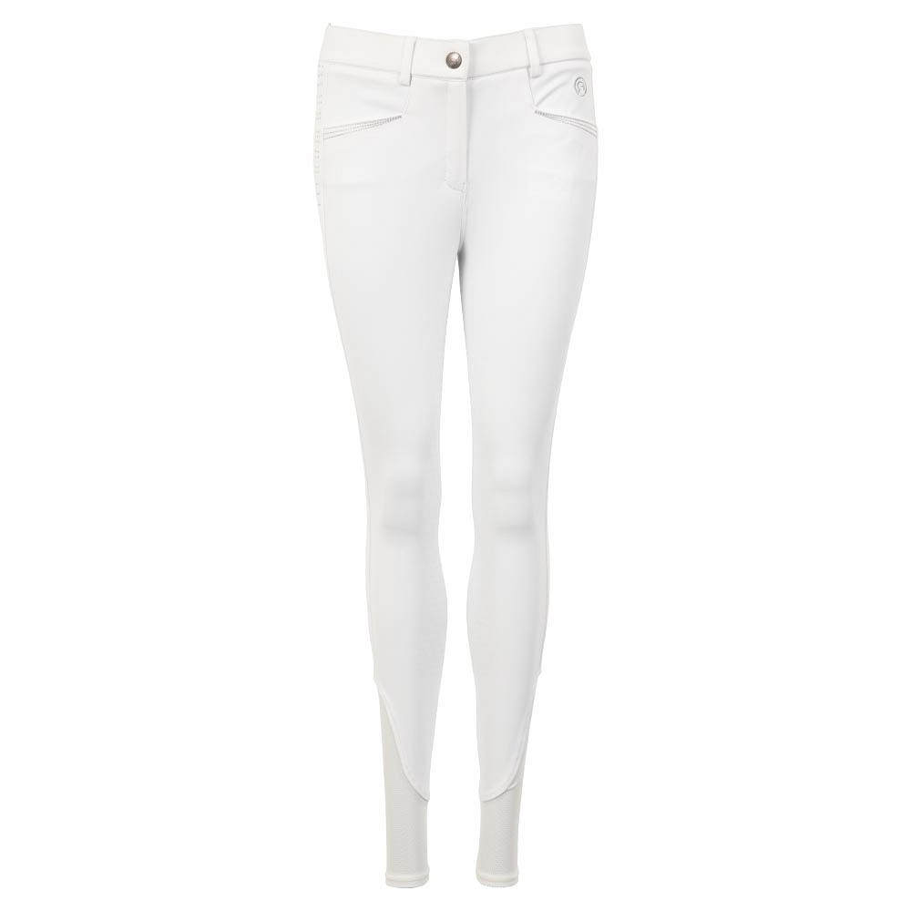 Anky montar pantalones asiento de silicona de lujo Damas XR19101, estos pantalones son un ajuste cómodo y tienen un aspecto lujoso gracias a los diamantes de imitación y al borde de costura plateada. Los pantalones están hechos de 76% de nylon y 24% de elastano con una cintura elástica con bucles de cinturón y una fijación de gancho y barra. El asiento de silicona proporciona una agarre adicional y un asiento más estable. Los insertos elásticos en la parte inferior de la pierna hechas de material de malla transpirable aseguran una comodidad óptima en las botas de montar. Ambos lados de los pantalones cuentan con un borde adornado con diamantes de imitación en la parte superior. Los bolsillos de hendidura en la parte delantera y los bolsillos de parche en la parte posterior están terminados con costuras de plata decorativas. El bordado en la parte delantera es del mismo color que los pantalones.