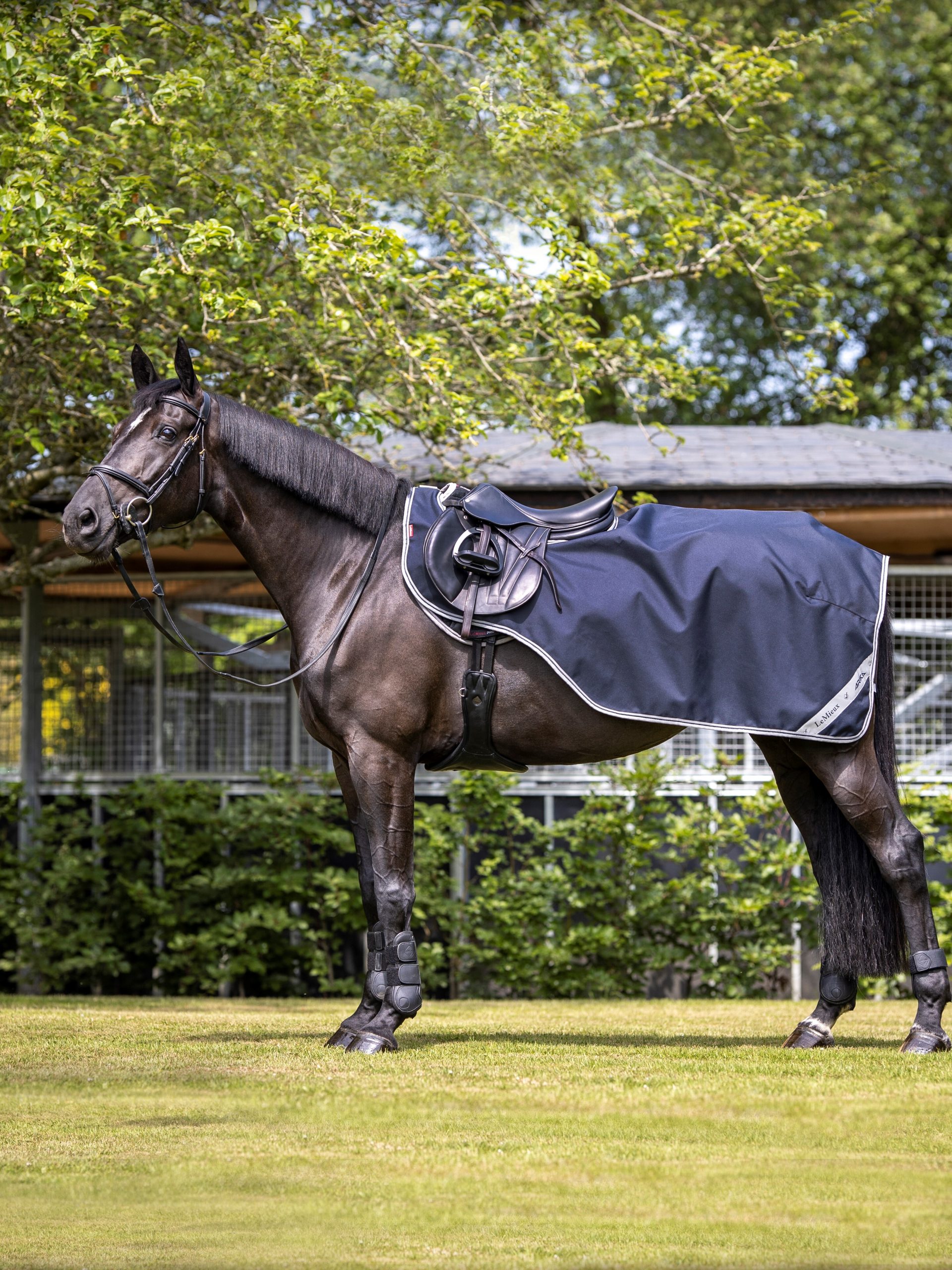 Perfecto para los caballos ajustados y recortados en calentamiento o trabajo lento, la hoja de ejercicio Lemieux Arika evita escalofríos y protege el abrigo de su caballo de los elementos. Cortado hábilmente para envolver la silla de montar y debajo de la almohadilla de la silla de montar, tiene la forma de cubrir solo donde se necesita, lo que permite la libre circulación de la pierna del jinete. Las tiras de seguridad reflectantes en los cuartos traseros aseguran que su caballo se ve con poca luz. Asegurado con un cierre anti-gancho y cinta de bucle en las entradas y una correa de filete de cordón suave en la parte trasera, esta hoja de ejercicio no se elevará ni se agitará. El forro externo y de microfleeca transpirable e impermeable trabaja juntos para dispersar el sudor durante el ejercicio y proporcionar una barrera desde la lluvia, lo que ayuda a regular la temperatura y mantener su caballo seco. Especificación técnica