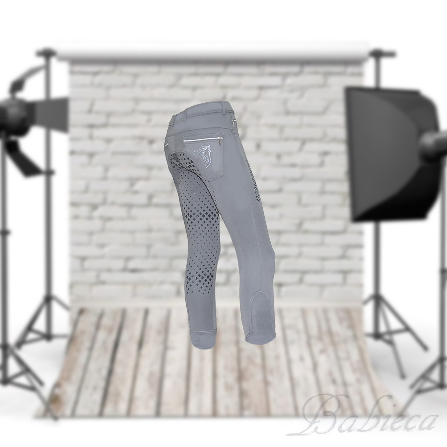 Babieca Breeches Shine Diamond Gris-Plata Full Grip, nueva colección Babieca breeches Shine Diamond, el mayor confort gracias a su tejido 100×100 microfibra técnica y el corte mas estilizado del mercado, los breeches Babieca se caracterizan por una gran durabilidad, comodidad a la par de un diseño fresco e inovador, sin renunciar nunca a la mejor relacción calidad/precio/diseño del mercado.