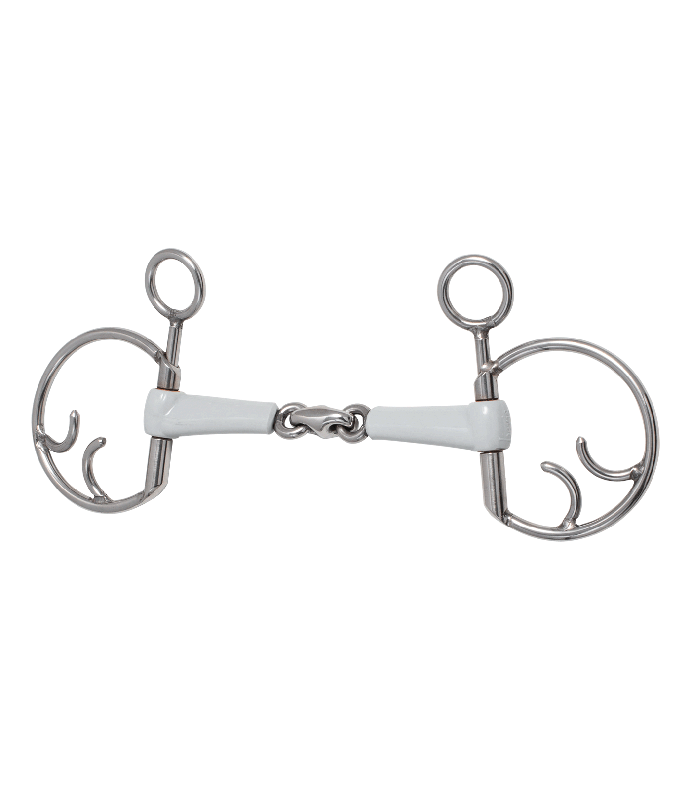 Nuestra nueva pieza bucal con articulación simple y articulación doble está hecha de plástico y se ha concebido con un diseño esbelto, superficies amplias de apoyo y una altura reducida y, por lo tanto, es ideal también para los caballos con bocas de dimensiones reducidas. Su superficie de plástico presenta un acabado de alta calidad, es particularmente lisa y se desliza bien en la boca, incluso en caballos que producen poca saliva. Gracias a su superficie amplia de apoyo, la pieza bucal está apoyada y modelada suavemente sobre la lengua y los belfos del caballo pasando a una embocadura con oliva girada y ajustada. Las articulaciones y la pieza central se caracterizan por su fino acabado, y la altura reducida de la pieza bucal se ha incorporado adaptada del modo respectivo. Los casquillos de cobre incorporados son garantía de que las anillas de la embocadura se deslicen sin ejercer resistencia alguna y con toda suavidad. ¡Con las nuevas embocaduras de beris, con articulación simple y articulación doble, se pueden llevar las riendas con una precisión inigualable garantizando, al mismo tiempo, una comunicación agradable y suave entre el jinete y el caballo! El respeto de la sensibilidad de la boca del caballo es nuestra prioridad principal. De la anilla al sofisticado lateral: cada pieza bucal se moldea, se suelda y se le da lustre a mano, El diseño único en su género de la pieza bucal mejora además la aceptación de la misma y facilita la comunicación dosificada entre caballo y jinete. Las piezas bucales beris constan de un plástico inalterable por comestibles, y presentan un acabado y una calidad de superficie inigualables hasta la fecha en embocaduras de plástico. Su superficie es particularmente lisa y se deslizan bien en la boca, incluso en caballos que producen poca saliva. Prácticamente a todos los caballos les gustan las piezas bucales beris. Producen saliva, mastican más y aceptan mejor la embocadura. Una verdadera obra artesanal hecha en Alemania. Espesor de la embocadura 18 mm.