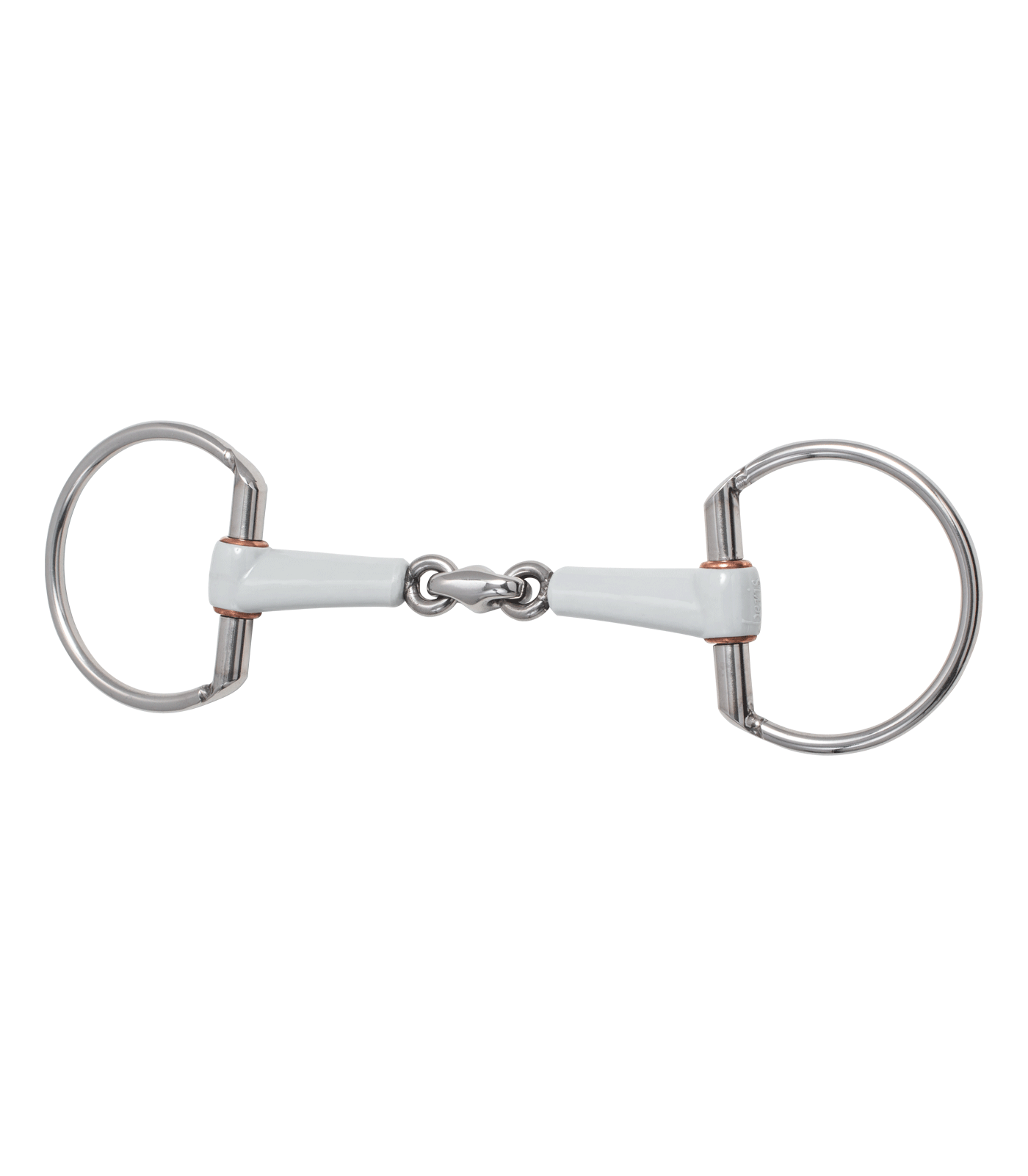 Nuestra nueva pieza bucal con articulación simple y articulación doble está hecha de plástico y se ha concebido con un diseño esbelto, superficies amplias de apoyo y una altura reducida y, por lo tanto, es ideal también para los caballos con bocas de dimensiones reducidas. Su superficie de plástico es particularmente lisa y se desliza bien en la boca, incluso en caballos que producen poca saliva. Gracias a su superficie amplia de apoyo, la pieza bucal está apoyada y modelada suavemente sobre la lengua y los belfos del caballo pasando a una embocadura con oliva girada y ajustada. Las articulaciones y la pieza central se caracterizan por su fino acabado, y la altura reducida de la pieza bucal se ha incorporado adaptada del modo respectivo. Los casquillos de cobre incorporados son garantía de que las anillas de la embocadura se deslicen sin ejercer resistencia alguna y con toda suavidad. ¡Con las nuevas embocaduras de beris, con articulación simple y articulación doble, se pueden llevar las riendas con una precisión inigualable garantizando, al mismo tiempo, una comunicación agradable y suave entre el jinete y el caballo! El respeto de la sensibilidad de la boca del caballo es nuestra prioridad principal. De la anilla al sofisticado lateral: cada pieza bucal se moldea, se suelda y se le da lustre a mano, El diseño único en su género de la pieza bucal mejora además la aceptación de la misma y facilita la comunicación dosificada entre caballo y jinete. Las piezas bucales beris constan de un plástico inalterable por comestibles, y presentan un acabado y una calidad de superficie inigualables hasta la fecha en embocaduras de plástico. Su superficie es particularmente lisa y se deslizan bien en la boca, incluso en caballos que producen poca saliva. Prácticamente a todos los caballos les gustan las piezas bucales beris. Producen saliva, mastican más y aceptan mejor la embocadura. Una verdadera obra artesanal hecha en Alemania. Espesor de la embocadura 18 mm Anilla: 7,5 cm