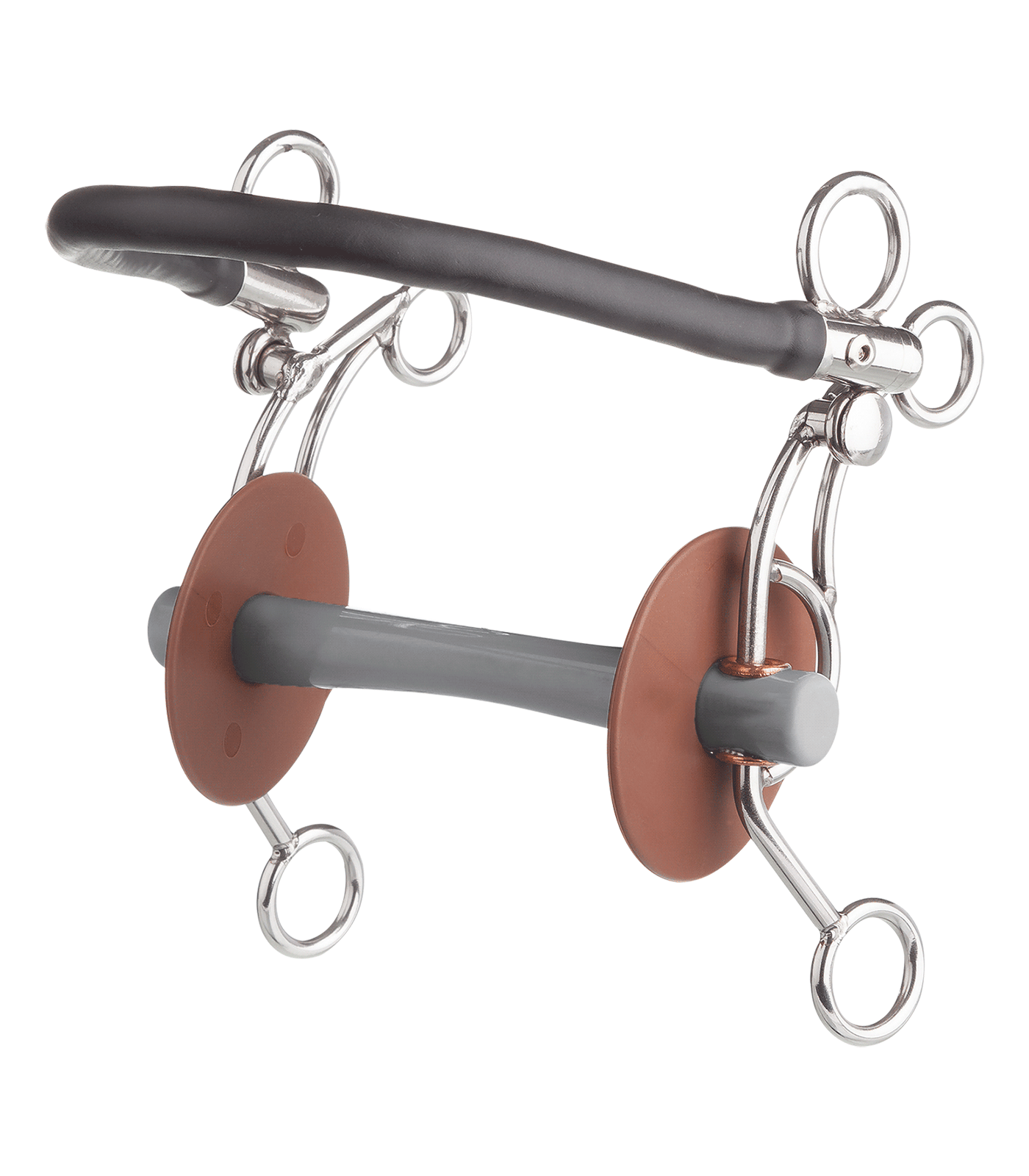 La embocadura anatómica se apoya de modo uniforme y ligeramente sobre la lengua y los lados y ofrece a la lengua más espacio y libertad de movimiento. Al coger las riendas se ejerce una presión uniforme sobre el lado de la mandíbula inferior y la lengua. No es posible enganchar ni pellizcar la lengua ni los lados. También se pueden evitar pellizcos en las comisuras empleando las arandelas respectivas. El cañón Confort se mantiene apoyado en una posición particularmente estable gracias a su forma ligeramente abombada. Las embocaduras con un cañón ligeramente abombado son muy suaves y su uso es muy adecuado para tratar con sumo cuidado la boca del caballo. Estas características en combinación con nuestro plástico beris son garantía de una comunicación aún mas suave y confortable entre jinete y caballo. El cañón Confort es apropiado sobre todo para su uso en caballos jóvenes y sensibles. El bocado Tandem US es casi idéntico al Tandem normal. Con su discreta muserola negra, se utiliza sobre todo en las presentaciones de venta o en los espectáculos ecuestres. Las embocaduras ideales tanto para el jinete ambicionado de tiempo libre como también de competiciones. La manufactura de embocaduras beris en la región alemana del norte Slesvig-Holstein se basa en una actividad de muchos años en la producción de embocaduras y en la experiencia acumulada resultante de la misma, así como en la habilidad artesanal y la pasión por el deporte ecuestre. Por amor al caballo. El respeto de la sensibilidad de la boca del caballo es nuestra prioridad principal. De la anilla al sofisticado lateral: cada pieza bucal se moldea, se suelda y se le da lustre a mano, El diseño único en su género de la pieza bucal mejora además la aceptación de la misma y facilita la comunicación dosificada entre caballo y jinete. Las piezas bucales beris constan de un plástico inalterable por comestibles, y presentan un acabado y una calidad de superficie inigualables hasta la fecha en embocaduras de plástico. Su superficie es particularmente lisa y se deslizan bien en la boca, incluso en caballos que producen poca saliva. Prácticamente a todos los caballos les gustan nuestras piezas bucales. Producen saliva, mastican más y aceptan mejor la embocadura. Una verdadera obra artesanal hecha en Alemania. Espesor de la embocadura 18 mm.