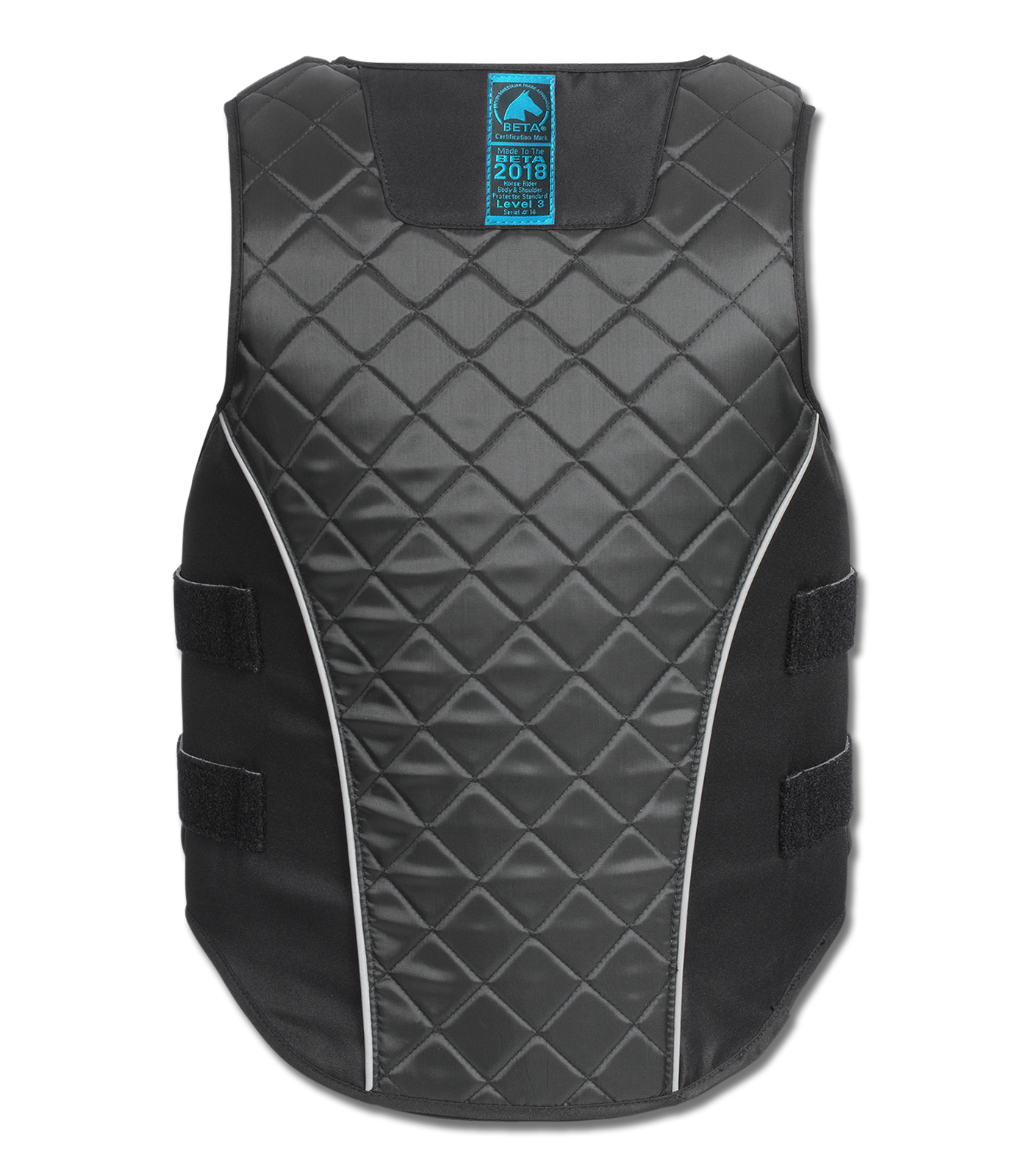 Bodyprotector P19, con cremallera. Chaleco de seguridad profesional de nueva generación. La gomaespuma high-tech ofrece al jinete la máxima libertad de movimientos, sin renunciar a la máxima seguridad. Regulación individual de la talla con 4 cierres de gancho y bucle a la altura de la cintura y 2 a la altura de los hombros. – Ensayado según el estándar BETA 3 y la norma europea vigente EN 13158-2018. – 4-Layer-Density Foam El chaleco de seguridad es suave y flexible por su estructura de varias capas. Las gomaespumas 4-Layer-Density se adaptan a la perfección al cuerpo y son aún más suaves y flexibles durante el uso. – Ensayado según el estándar BETA 3 y la norma europea vigente EN 13158-2018, nivel 3. – Bodyprotector particularmente suave y flexible – Fácil de poner y quitar por su cremallera – Lavable y de fácil conservación – Sólo lavado a mano Los bodyprotector SWING protegen el cuerpo sin menoscabar el placer de cabalgar en libertad. El empleo de materiales high-tech permite la máxima libertad de movimientos. EG_Konformitätserklärung Tabla de tamaños