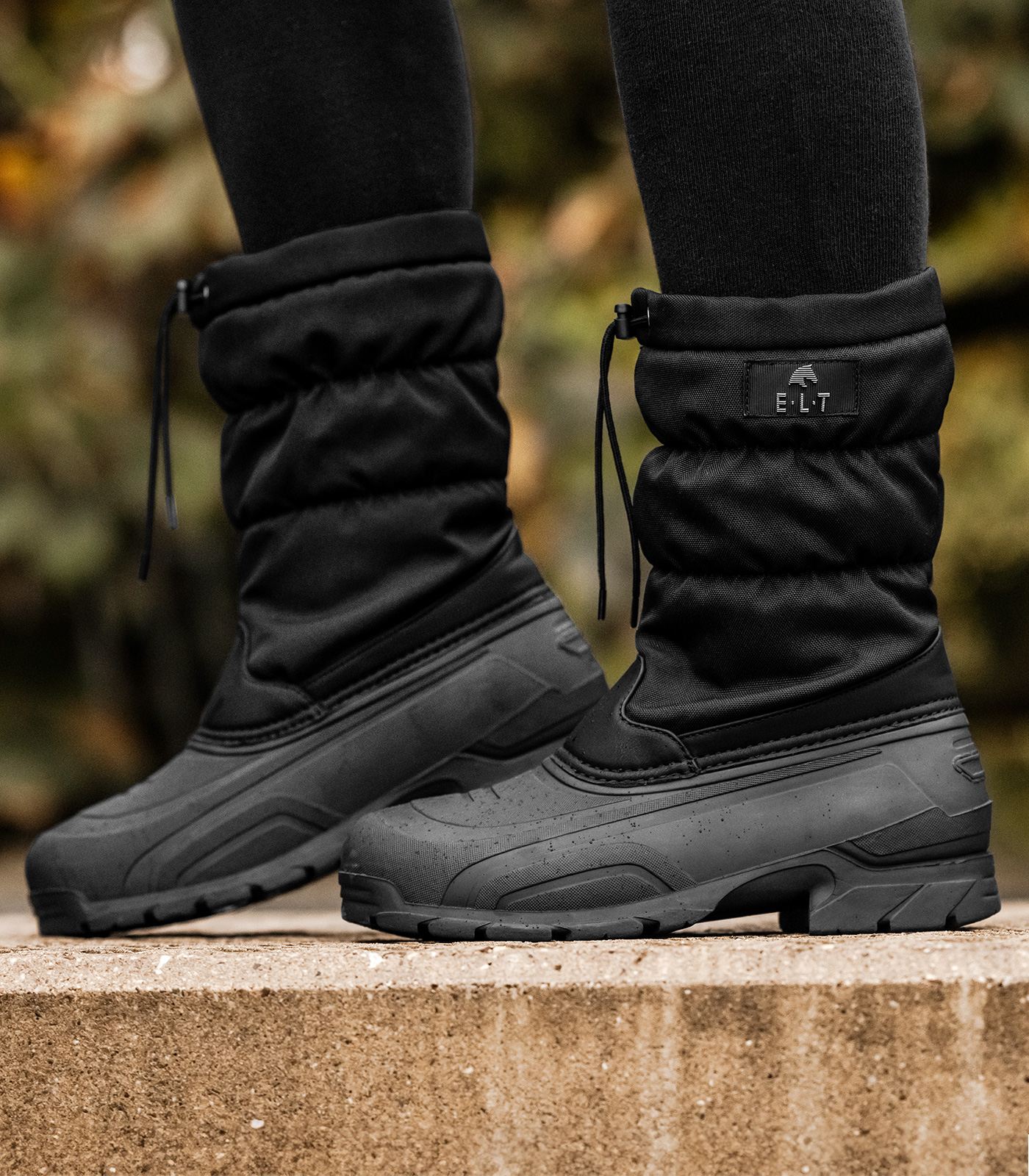Botas térmicas modernas con emblema con logotipo ELT – Semi-caña, para calzarlas en un instante – en Diseño clásico que no pasa de moda – Fuertes y Resistentes a la intemperie – Forro Polar envolvente – Galocha impermeable, caña material repelente al agua – Suela antideslizante – Ancho de caña ajustable mediante cordel/cordón – Con Suela interior antisudor extraíble – Emblema Con logotipo ELT Material exterior: 100% poliéster, Suela: otro material