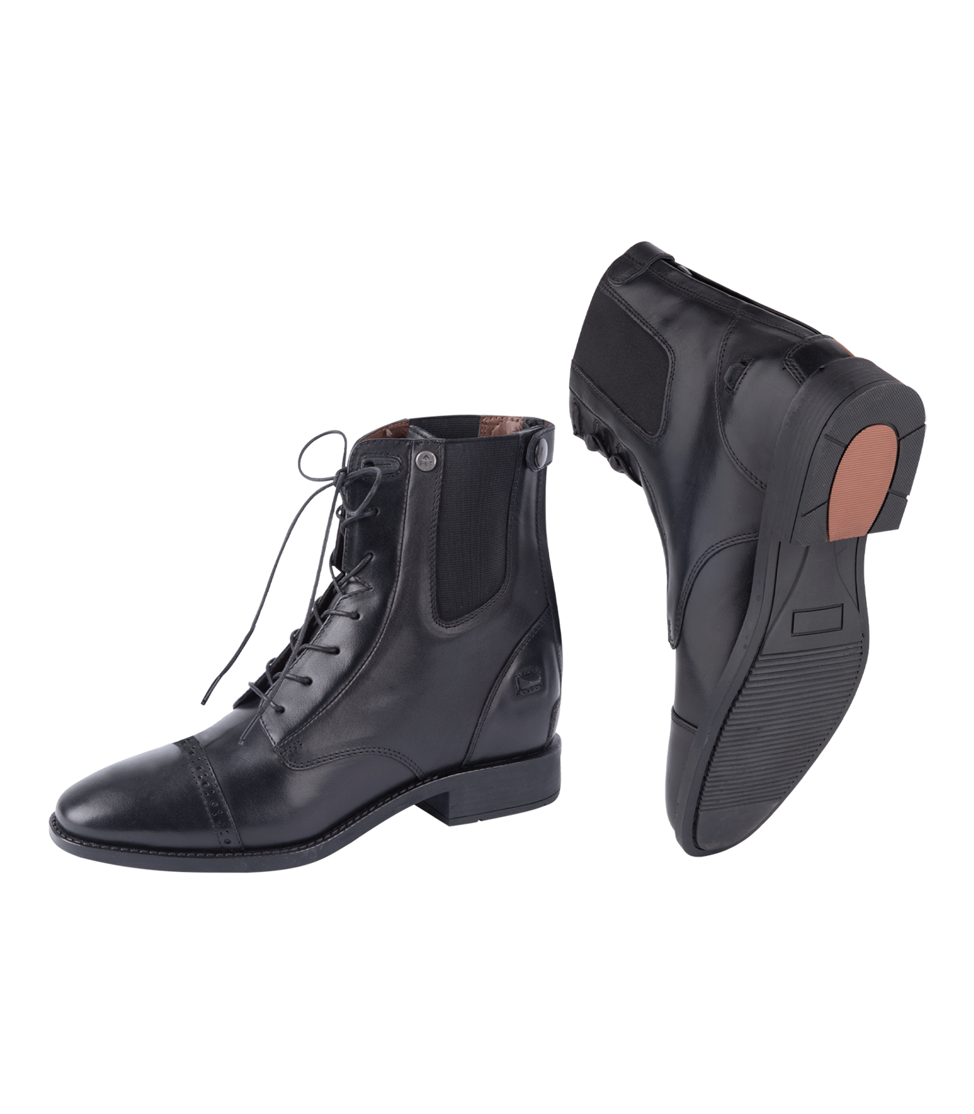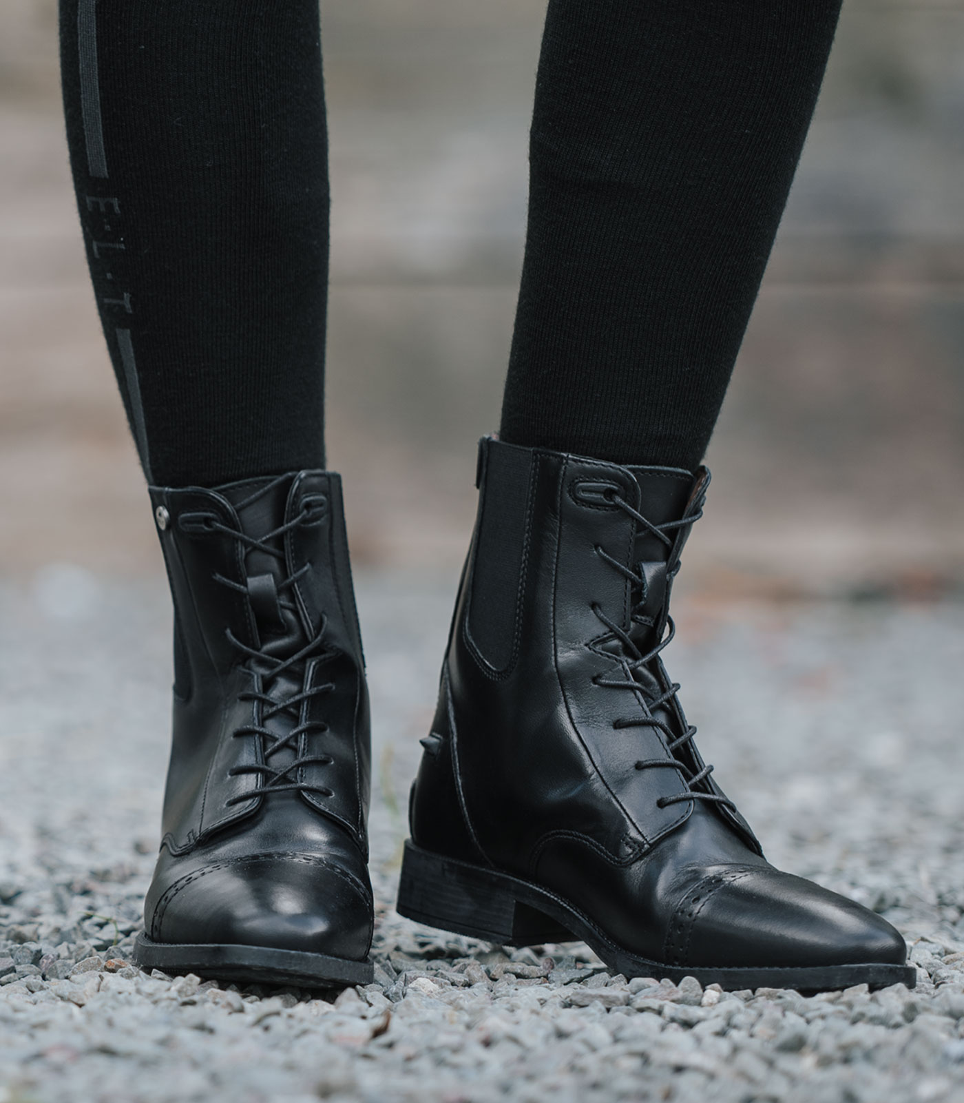 – Botín estilizado de cordones y de formas imperecederas – Con cremallera en la parte trasera – cuero liso – Forro de alta calidad – Resistente – Material repelente al agua – Suela antideslizante – Tacón Ideal para la equitación – Pin Con logotipo E·L·T – inserciones elásticas laterales – Con portaespuelas Material exterior: piel, Forro: 100% poliuretano, Suela: otro material