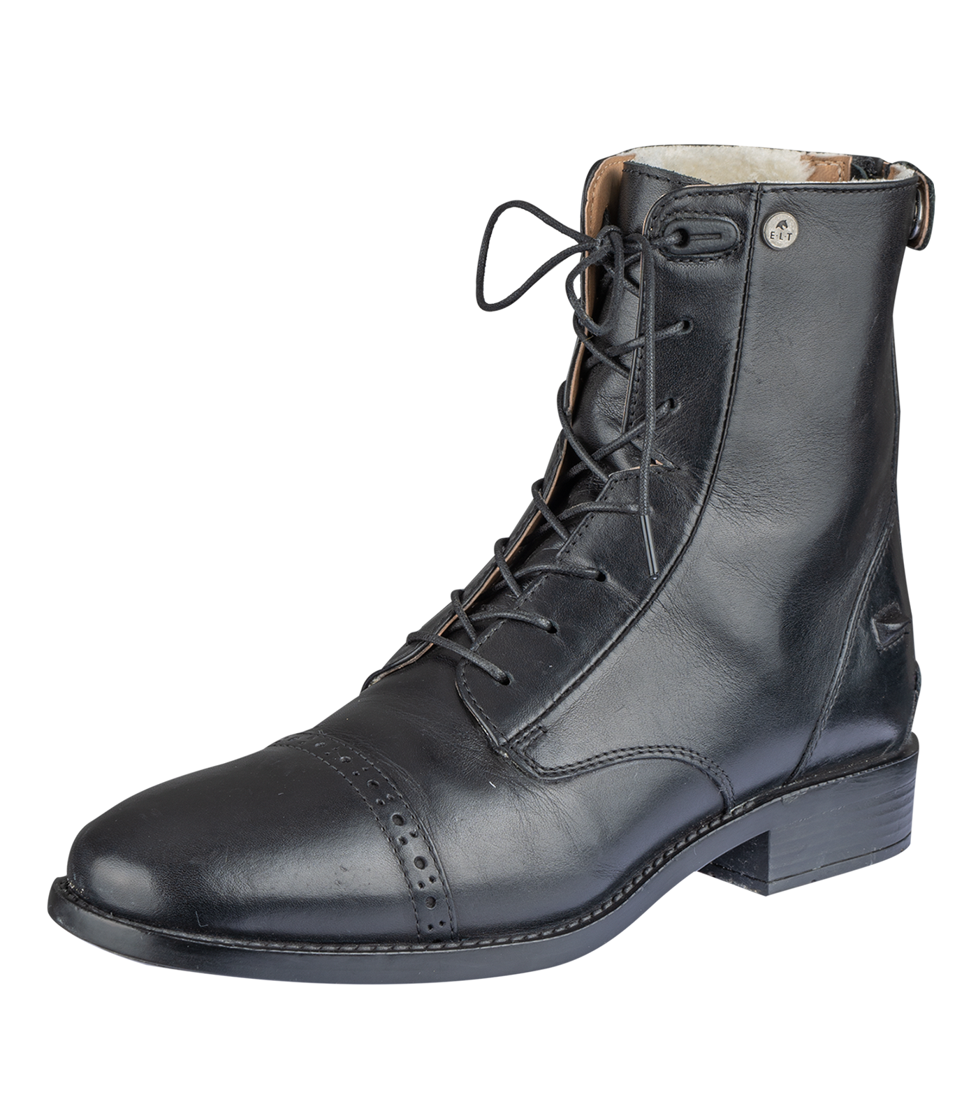 – Botín estilizado de cordones Belfort Winter de líneas atemporales – Con cremallera en la parte trasera – Cuero liso – Forro cálido – Indeformables – Material repelente al agua – Suela antideslizante – Tacón ideal para la equitación – Broche con logotipo E·L·T – Con inserciones elásticas laterales – Con portaespuelas Material exterior: piel, Forro: 100% poliuretano, Suela: otro material