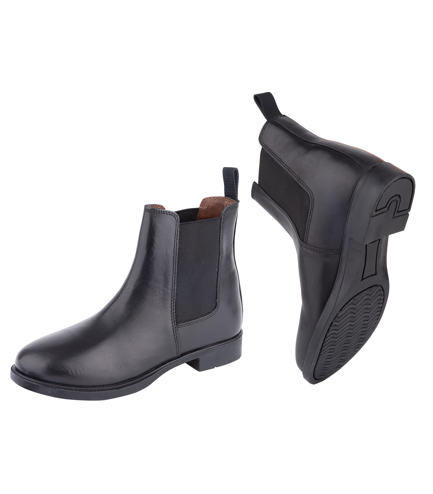 – Botín estilizado Jodhpur de formas imperecederas – Cuero liso – Resistente – Material repelente al agua – Suela antideslizante – Tacón ideal para la equitación – Inserciones elásticas laterales Material exterior: piel, Forro: 100 % poliuretano, Suela: otro material