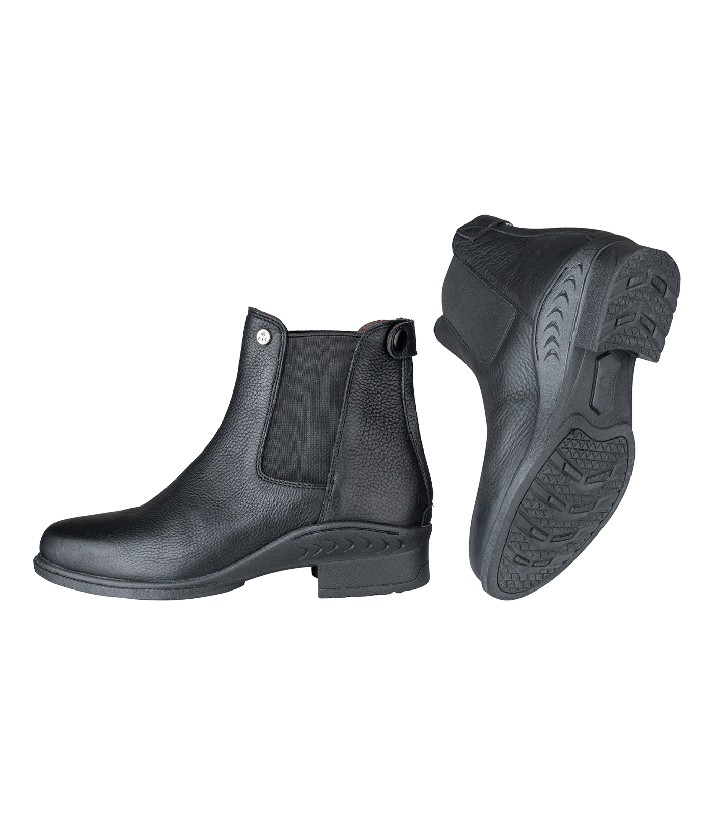 – Cuero de vaca suave, graneado por completo y repujado, transpirable y duradero – Forro interior, suave y absorbente del sudor – Cremallera YKK® revestida y de alta calidad en la parte trasera, asegurada por una correa de cuero con cinta elástica y botón automático con logotipo ELT – Inserciones elásticas laterales – Suela interior muy confortable y transpirable, premoldeada y de quita y pon – Suela perfilada de goma en diseño dinámico con tacón fijo y logotipo estampado ELT Material exterior: piel, Forro: 100 % cuero Suela: otro material