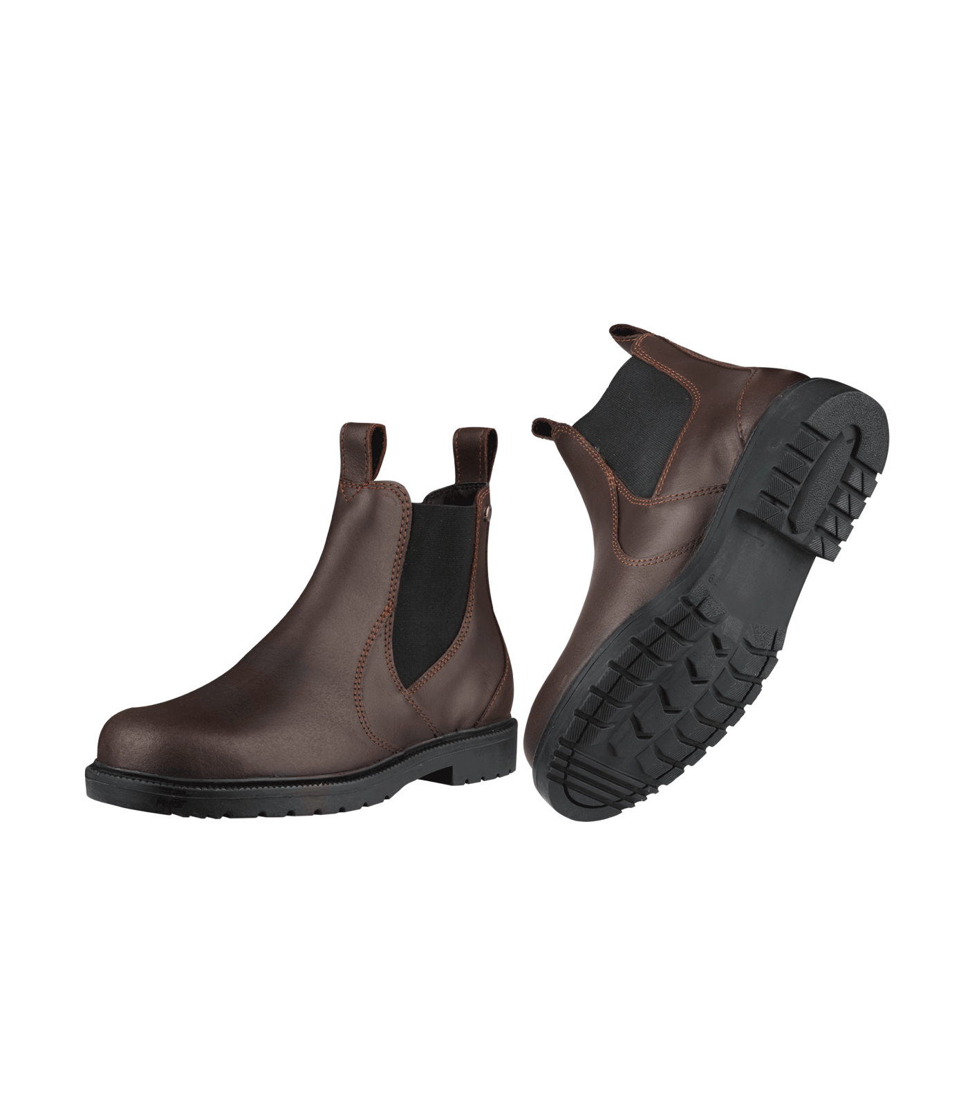 – Botines Jodhpur con puntera de acero de seguridad – De cuero desdoblado engrasado de búfalo – Indeformables – Interior suave de tejido transpirable – Suela de goma antideslizante y antiestática – La puntera de acero en la zona de los dedos se fabrica de acuerdo con la norma EN12568 – DIN EN ISO 20345 – DIN EN ISO 20347 – Broche con logotipo E·L·T – Con inserciones elásticas laterales Material exterior: piel, Forro: 100 % poliamida, Suela: otro material