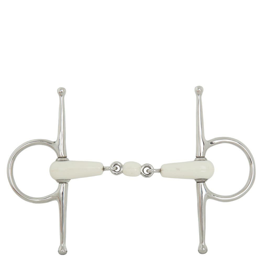 BR Double articulada Combo Combo Comfort de 18 mm de 18 mm 165 mm, esta mejilla completa de doble articulación presenta una boquilla sintética con un núcleo de metal y anillos de acero inoxidable. Gracias a la combinación de material sintético flexible y acero inoxidable de alta calilza, los bits son sólidos, pero muy suaves y gentiles. El material sintético presenta una dureza de 90A y está aprobado por la FDA. Esto significa que el material no es tóxico y está libre de solventes y plastificantes. Los bits se pueden usar para todos los caballos y son particularmente adecuados para caballos jóvenes; Caballos con bocas y caballos sensibles que tienen dificultades para aceptar otros materiales. El bit aplica presión normal en la boca. Espesor de la boquilla 18 mm, longitud de vástago 165 mm. El objetivo principal de un bit de mejilla completa es ejercer presión lateral, este énfasis en las ayudas para girar es especialmente útil para los caballos jóvenes. Los brazos de la broca evitan que la broca se tire a través de la boca. Los guardianes, también conocidos como bucles fulmer, unidos a la parte superior de los brazos, ayudan a estabilizar la broca y ofrecen una ligera acción de apalancamiento. El bit de doble articulación consta de tres partes. La sección media del portavoz se encuentra plana sobre la lengua, esto causa más presión sobre la lengua que un solo broca articular. Cuanto más gruesa sea la sección media, más presión creará en la lengua.