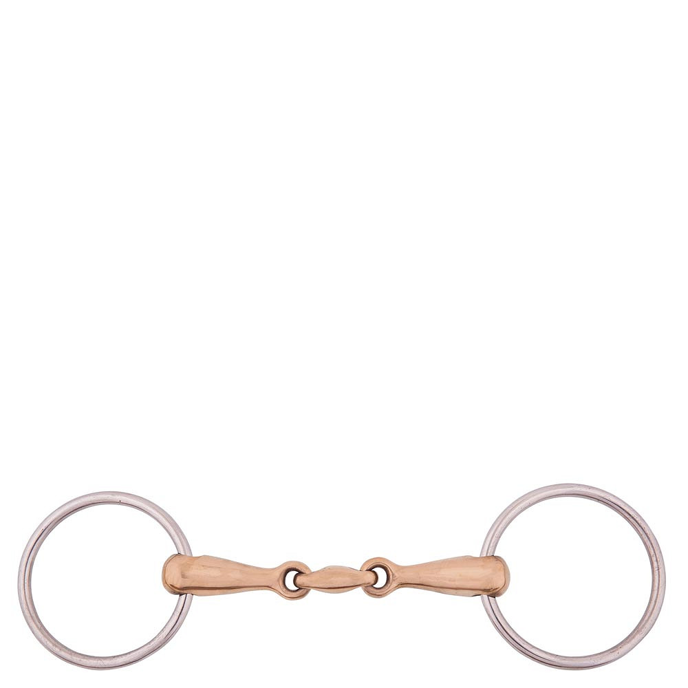 BR filete de doble articulación con anillas sueltas 18 mm, cuprión macizo de doble articulación con anillas de acero inoxidable, anillas de 65 mm. Grosor de la boquilla 18 mm. El mejor producto ecuestre de competición en tienda hípica El Estribo Alicante +34648425534