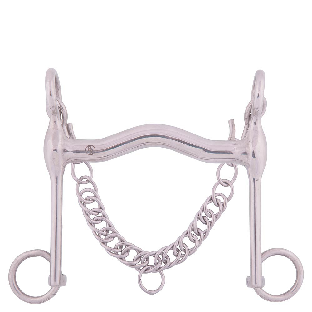 Broca BR Weymouth, de acero inoxidable macizo, con carriles fijos de 140 mm de longitud. Grosor de la boquilla 15 mm. Con cadena de bordillo. El mejor producto ecuestre de competición en tienda hípica El Estribo Alicante +34648425534