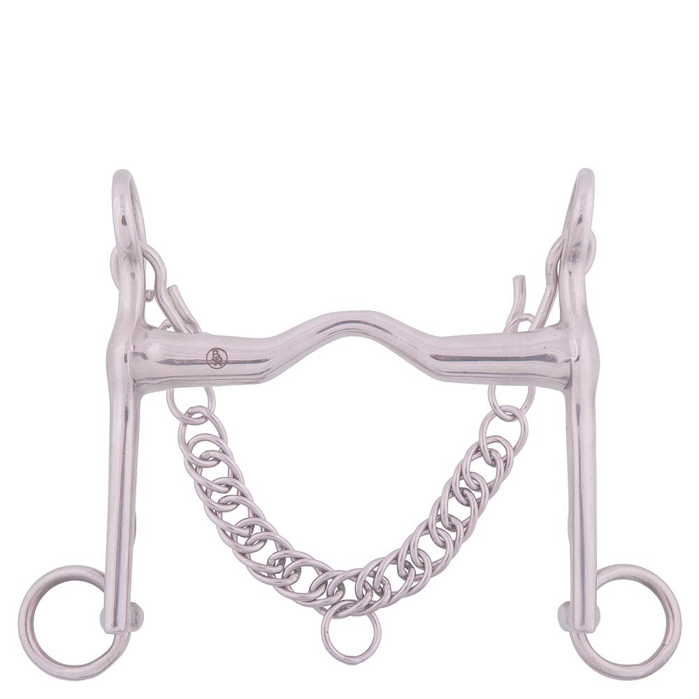 Broca BR Weymouth, acero inoxidable macizo, mejillas fijas de 140 mm de longitud. Grosor de la boquilla 18 mm. Con cadena de bordillo. El mejor producto ecuestre de competición en tienda hípica El Estribo Alicante +34648425534