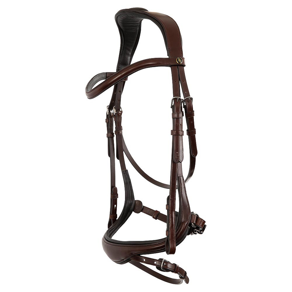 Br Bridle Longridge, esta brida de forma anatómica se destaca por su banda nasal en forma de U y el tocado ancho y suave. El tocado de tipo K «Fit Anatomic» (Art. 189048) tiene una forma anatómica y suavemente acolchada. Esto garantiza un buen ajuste, una mejor distribución de presión en la cabeza del caballo y mucha comodidad. La banda anatómica de la nasal en forma de U proporciona un cómodo forro y una almohadilla suave de la barbilla y es ajustable para crear el ajuste perfecto. Las hebillas y los anillos D están cubiertos con aletas de protección. El BR Bridle Longridge está hecho de cuero inglés de alta calidad que es flexible, duradero y se adapta bien.El mejor producto ecuestre de competición en tienda hípica El Estribo Alicante +34648425534