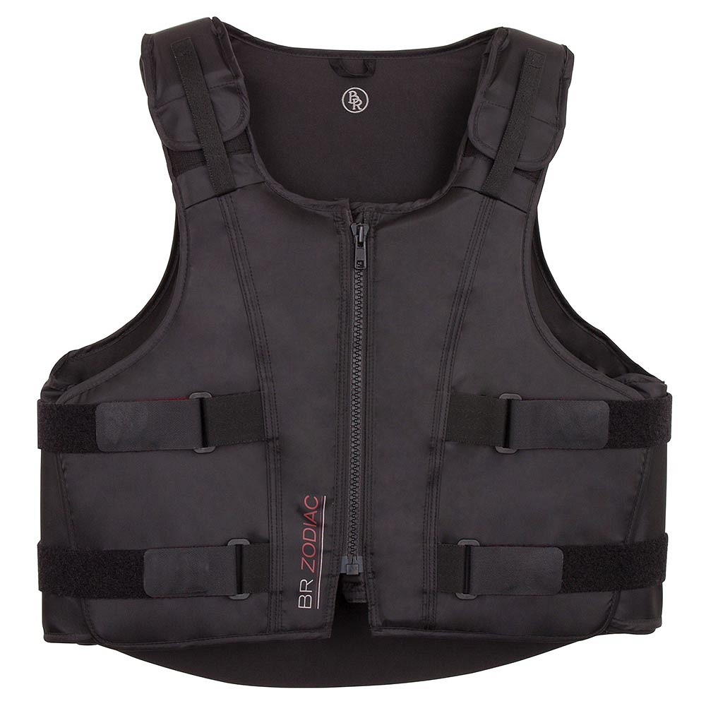 BR Protector Corporal Zodiac Niños, Este protector corporal flexible para niños se adapta perfectamente a los contornos del cuerpo. El núcleo protector consta de cuatro capas separadas de espuma compuesta, lo que proporciona mucha más flexibilidad que un núcleo sólido. Además, el material absorbe el calor corporal, por lo que puede adaptarse aún mejor al cuerpo. Además, el material es transpirable y ligero. Las amplias sisas del protector corporal combinadas con su material flexible garantizan el máximo confort y una óptima libertad de movimiento. El protector se puede ajustar en hombros y cintura mediante cierres de velcro. Gracias a la resistente cremallera YKK en la parte delantera, no es necesario utilizar cierres de velcro una vez que el protector se ha ajustado al tamaño adecuado. Las capas de espuma se pueden quitar del protector mediante cierres de velcro, lo que permite lavar el material exterior (poliéster/nylon). El protector corporal cumple con la norma de seguridad EN 13158-2018 nivel 3. También disponible para adultos, artículo 343009. El mejor producto ecuestre de competición en tienda hípica El Estribo Alicante +34648425534