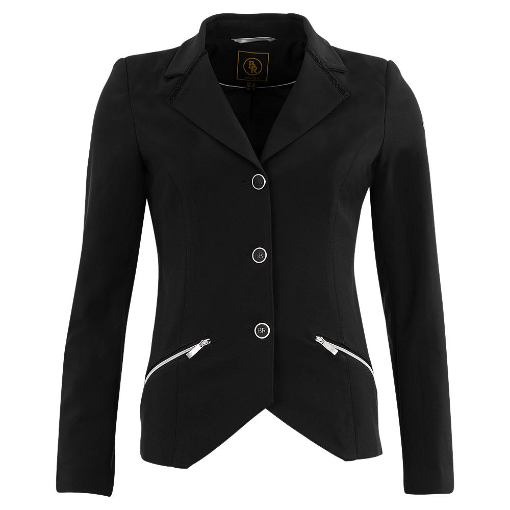 Chaqueta de competición BR Nottingham para mujer, • Regula la humedad y de secado rápido • Adornada con cinta brillante • Con bolsillos con cremallera INFORMACIÓN DEL PRODUCTO Descripción: La chaqueta de competición Nottingham para mujer tiene un aspecto clásico y Regula la humedad y se seca rápidamente para garantizar una agradable comodidad. La chaqueta tiene dos prácticos bolsillos con cremallera en la parte delantera y está rematada con una cinta brillante en el cuello y la espalda. La chaqueta tiene un cierre de botones (tres botones) en la parte delantera y una hilera de cinco botones pequeños en la parte inferior de las mangas. El mejor producto ecuestre de competición en tienda hípica El Estribo Alicante +34648425534