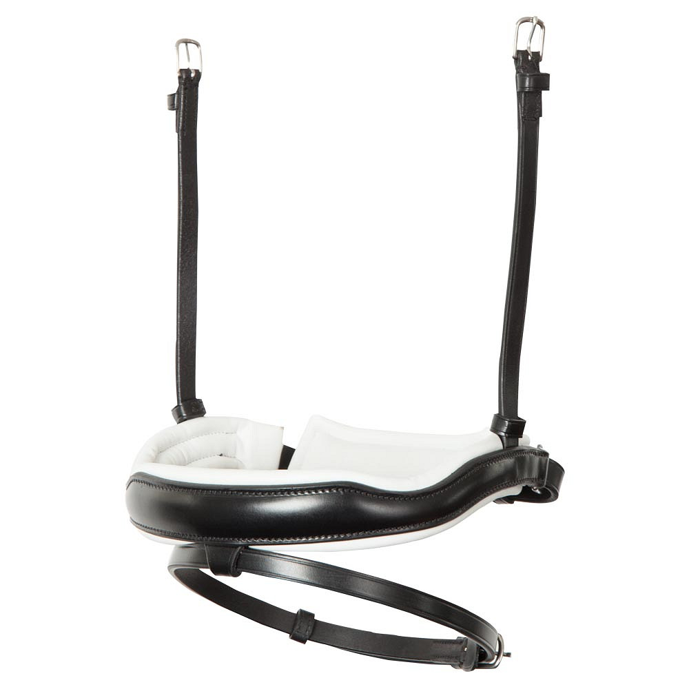 BR BANDA DEL FLABLE DE CANTA ANATOMIC BR Anatómica de la banda de nariz flash de manivela, esta banda de nariz flash de manivela extra ancha (± 4 cm) se eleva redonda con relleno suave y tiene una almohadilla de barbilla ancha con relleno suave. El diseño especial de la banda para la nariz proporciona más libertad en los pómulos y las terminaciones nerviosas sensibles en la cabeza de los caballos. También reduce la presión sobre los dientes del caballo. La brida tiene un accesorio flash en forma de V. La hebilla de la correa de flash tiene una aleta protectora adicional. Esta banda nasal se adapta a cualquier brida con hebillas en ambos lados para unir las correas de la banda nasal, como las bridas Symétricas BR.