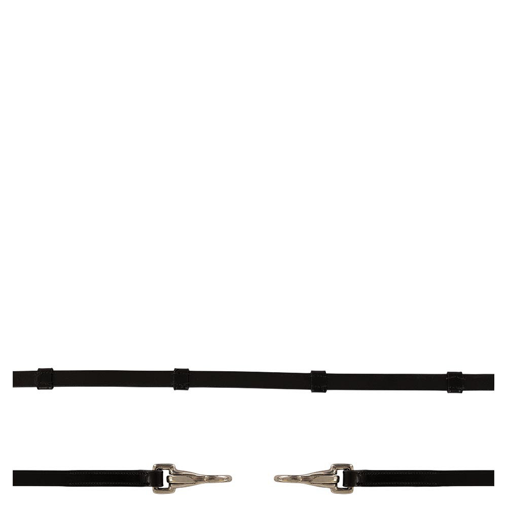 Riendas de cuero islandés BR, • Rienda de cuero especial para caballos islandeses • Cuatro topes de rienda en cada lado • Mosquetones para sujetar a la broca INFORMACIÓN DEL PRODUCTO Descripción: Esta rienda de cuero está hecha de alta- Cuero de calidad que es resistente y se mantiene hermoso durante mucho tiempo. La rienda está cerrada por el centro y tiene un grosor de aprox. 13 mm (4/8″). La rienda tiene no menos de cuatro topes de rienda en ambos lados. Con los fuertes mosquetones en los extremos, puedes sujetar fácilmente las riendas a la broca. El mejor producto ecuestre de competición en tienda hípica El Estribo Alicante +34648425534