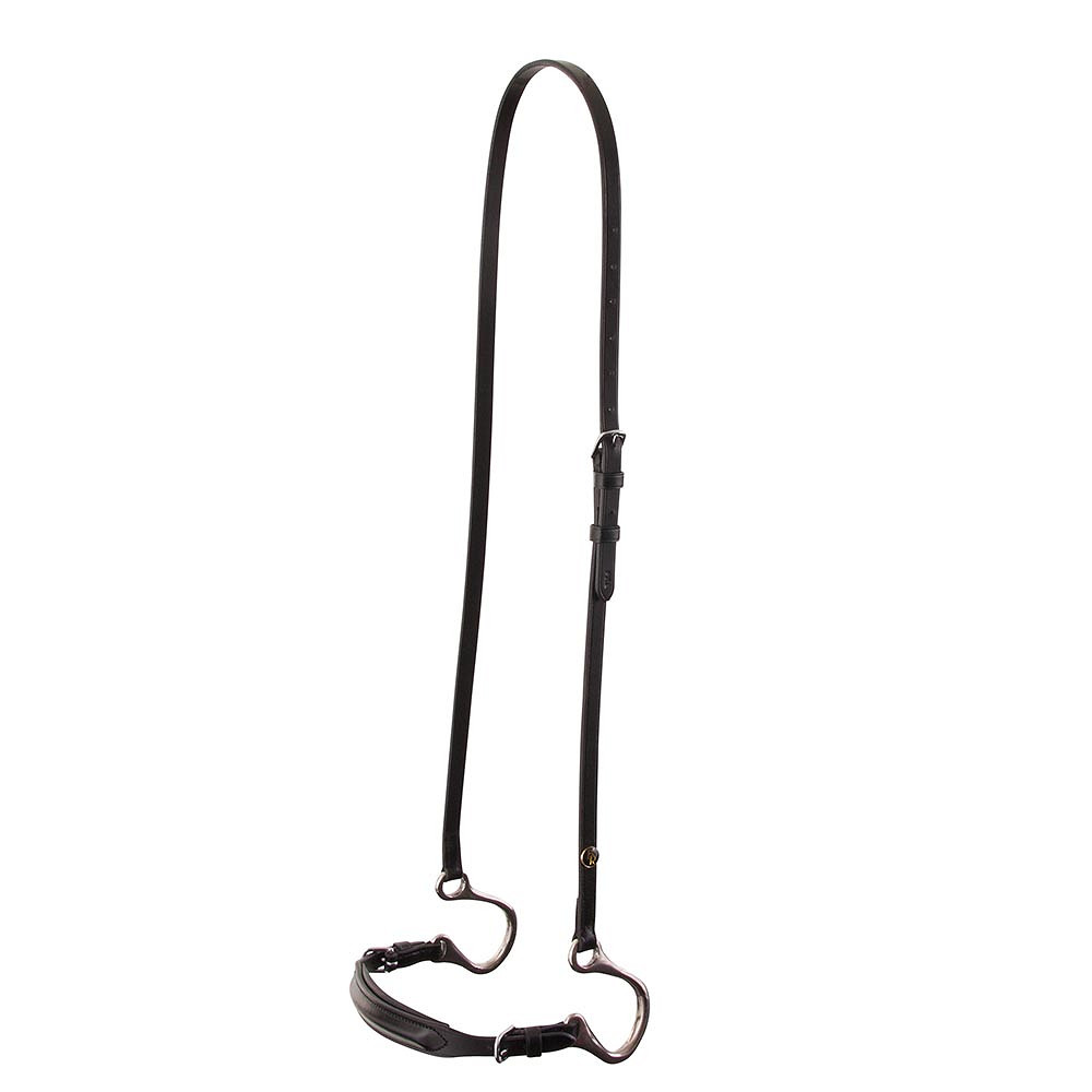 BR Kineton Naret Band, la banda de nariz Kineton tiene una acción muy fuerte en las áreas de la boca del caballo y las fosas nasales. Evitando que el caballo abriera la boca y le ponga la lengua sobre la broca. Adecuado para bridas con la correa de la banda nasal sobre la corona. La banda de nariz negra presenta hebillas brillantes de color plateado y la banda de nariz de tabaco presenta hebillas mate y de latón.