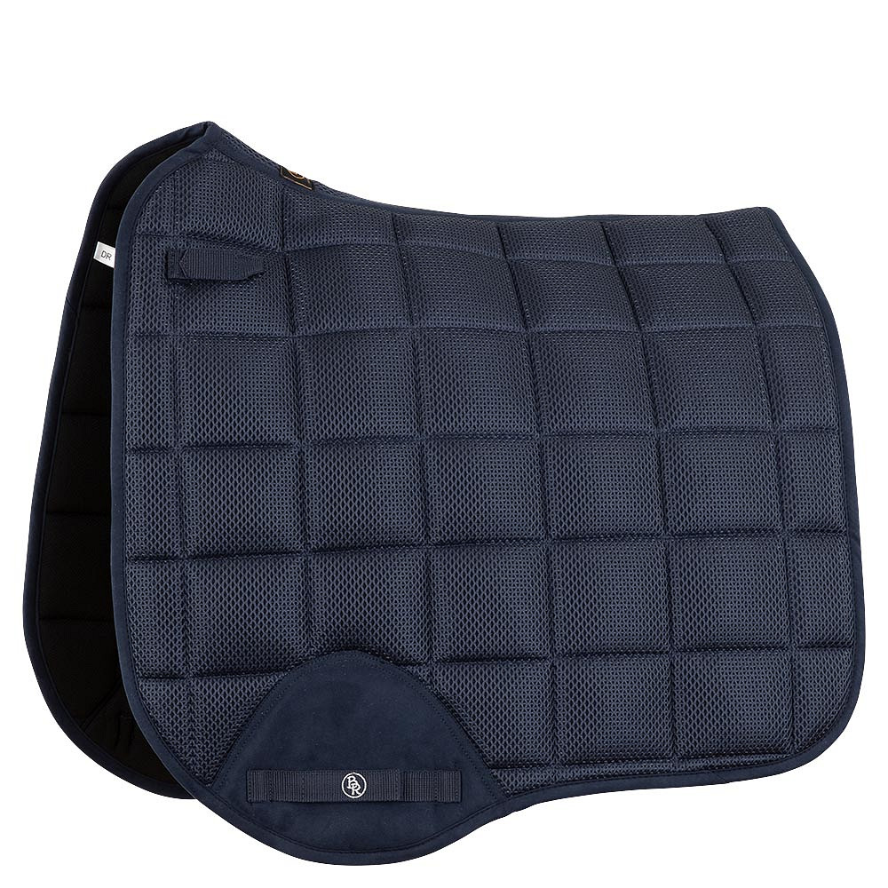 Mantilla BR Doma con flujo de aire óptimo, esta mantilla extremadamente transpirable está hecha de malla 3D y rezuma estilo y ventajas técnicas. La mantilla cuenta con un relleno de poliéster de 340 g y un forro Coolmax refrescante y de secado rápido. El material evita el sobrecalentamiento y garantiza una circulación de aire óptima. Su costura trasera de forma anatómica reduce el riesgo de presión sobre la columna y la cruz. La mantilla tiene un elegante acolchado cuadrado y dispone de cinchas y correas de sujeción con velcro. La almohadilla está reforzada debajo de las cinchas. El mejor producto ecuestre de competición en tienda hípica El Estribo Alicante +34648425534