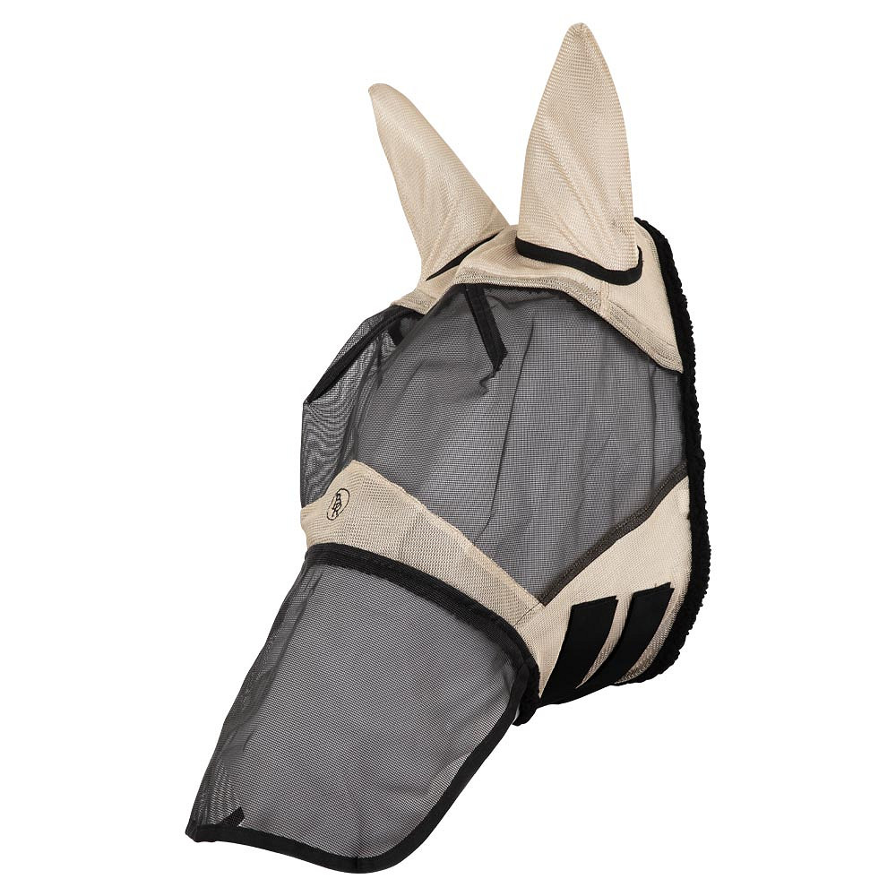 BR Fly Mask Classic, esta máscara de mosca con orejas está hecha de malla de poliéster transpirable. Cuenta con un cierre doble de velcro en la parte posterior. El relleno de lana a lo largo de las costuras no solo previene la irritación de la piel, sino que también permite un ajuste cercano.