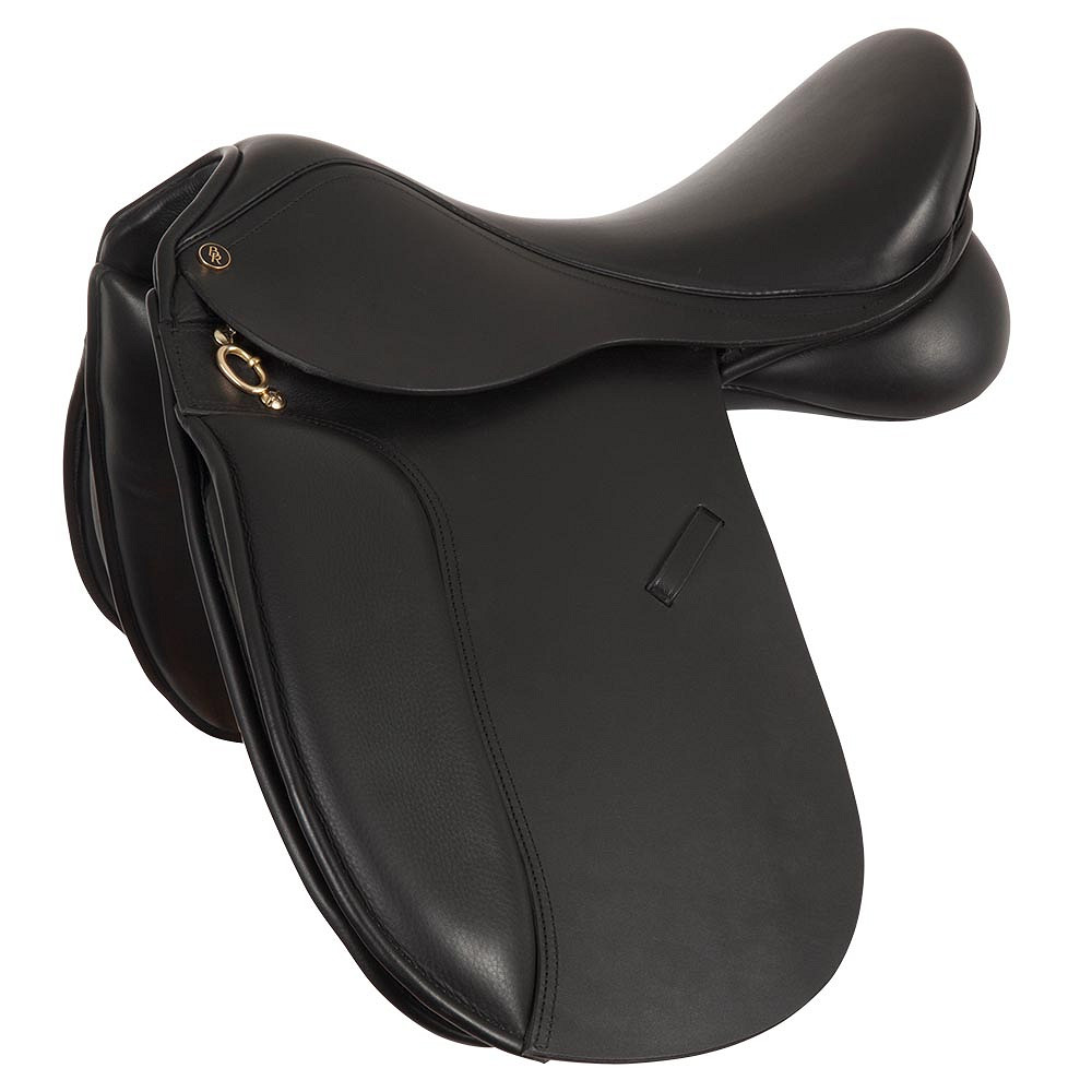 Silla de Doma BR Pony Torellini, La silla de doma BR Torellini está fabricada en cuero europeo de alta calidad y diseñada especialmente para ponis. Su asiento profundo y sus rodilleras generosamente rellenas están cubiertas con cuero extra suave para permitir una comodidad óptima. Las rodilleras fijas proporcionan el apoyo deseado sin limitar la libertad del ciclista. El sillín cuenta con una varilla de polipropileno con forma anatómica y una barra de garganta BR intercambiable hecha de acero para resortes en tamaño mediano/ancho. La barra de garganta también se vende por separado, artículo 109001. El sillín está equipado con paneles de soporte anchos rellenos con una mezcla de lana real y sintética, que se rellena con un forro de neopreno para garantizar la resistencia y la retención de la forma. La combinación de materiales garantiza una distribución uniforme del peso y ayuda a reducir los puntos de presión. El sillín está equipado con tacos de 3 puntos de cuero curtido al cromo. La correa delantera es un tocho en punta que sale del rollo de rodilla y la correa trasera es un tocho en V. Además, el sillín está equipado con una correa adicional, lo que le da a su fabricante de sillín la opción de reemplazar el tocho de punta por un tocho central recto. El sillín está adornado con costuras en contraste para una apariencia elegante y viene con una lujosa funda de sillín BR forrada que también tiene un compartimento de almacenamiento para la cincha. El mejor producto ecuestre de competición en tienda hípica El Estribo Alicante +34648425534