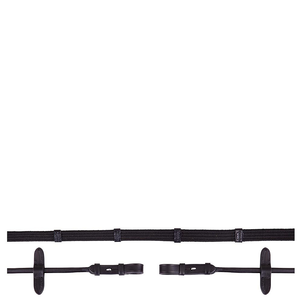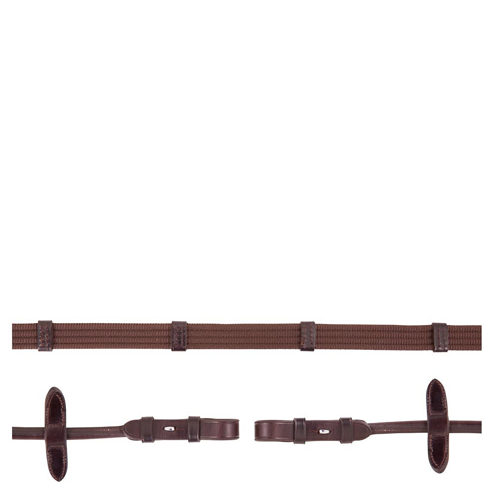 Riendas Web BR, riendas Web con extremos de cuero cosidos redondos, topes para mano y rienda, pernos de gancho y hebilla redonda, 19 mm. El mejor producto ecuestre de competición en tienda hípica El Estribo Alicante +34648425534