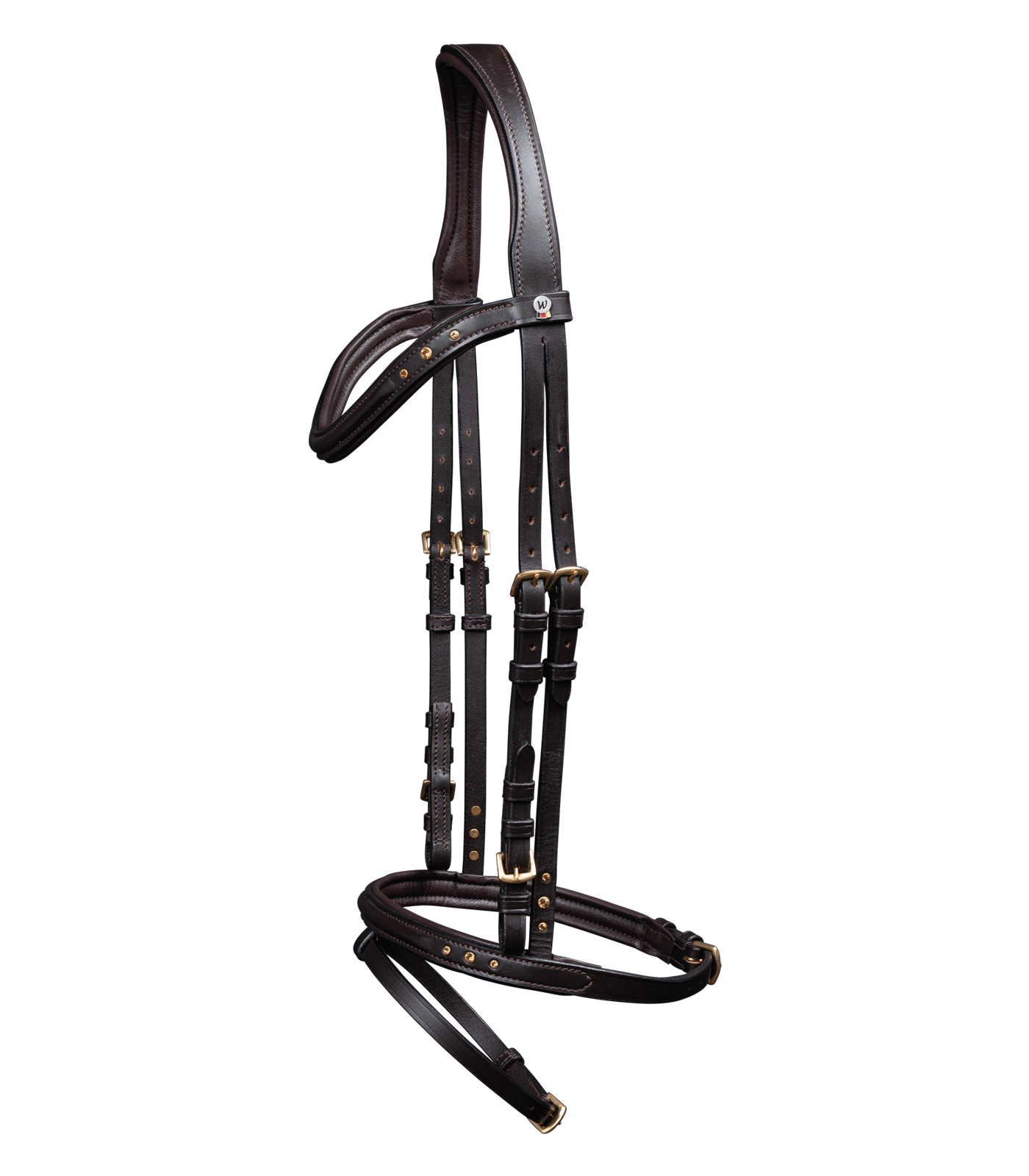 – Testera anatómica para más libertad de movimiento de las orejas – Cabezada combinada inglesa de montar – muserola y testera con suave acolchado – Con 6 piedras de estrás en la cabezada