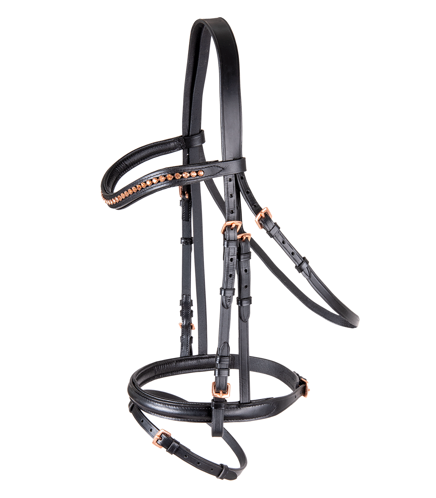 – Cabezada combinada inglesa de montar – Testera derecha – Frontalera redondeada – Hebillas de hierro con acabado rosé – Riendas de tela de 19 mm STAR ¡La bonita colección económica de bridas Waldhausen con una relación calidad-precio realmente excelente! El mejor cuero tratado de lo mejor.
