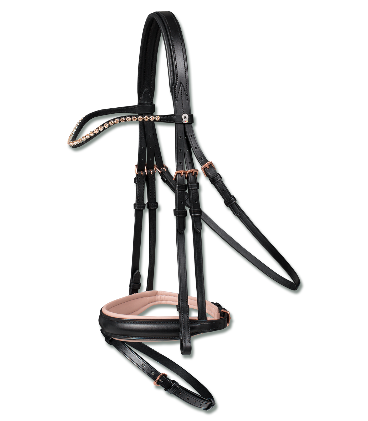 – Cabezada combinada inglesa de montar – Testera derecha con más espacio para las orejas – Frontalera redondeada con cadena de estrás rosado – Muserola y testera con suave revestimiento – Hebillas de acero inoxidable de color rosado – Riendas de tela de 19 mm Colección X-Line de Waldhausen: elegante y de calidad. Más de 185 años de experiencia trabajando el cuero garantizan una calidad excelente y un ajuste perfecto. Nuestros productos de la serie X-Line están realizados con el mejor cuero tratado en las curtiembres de mayor renombre. Bridas Waldhausen ¡para jinetes con un destacado sentido de la calidad!