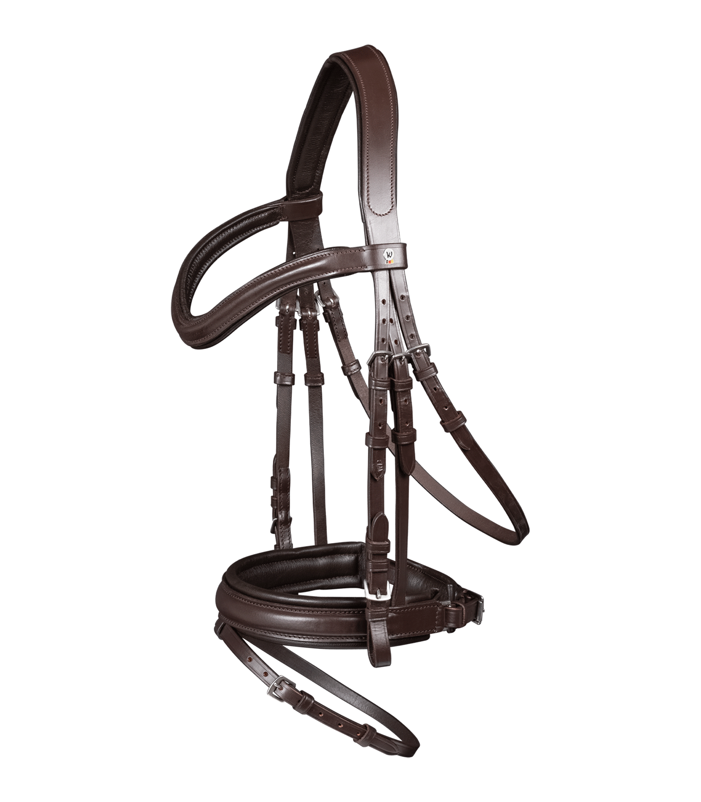 – Cabezada combinada sueca de montar – Testera anatómica – Frontalera redondeada – Muserola, frontalera y testera con suave revestimiento – Hebillas de acero inoxidable – Riendas de tela de 19 mm Colección X-Line de Waldhausen: elegante y de calidad. Más de 185 años de experiencia trabajando el cuero garantizan una calidad excelente y un ajuste perfecto. Nuestros productos de la serie X-Line están realizados con el mejor cuero tratado en las curtiembres de mayor renombre. Bridas Waldhausen ¡Para jinetes con un destacado sentido de la calidad!