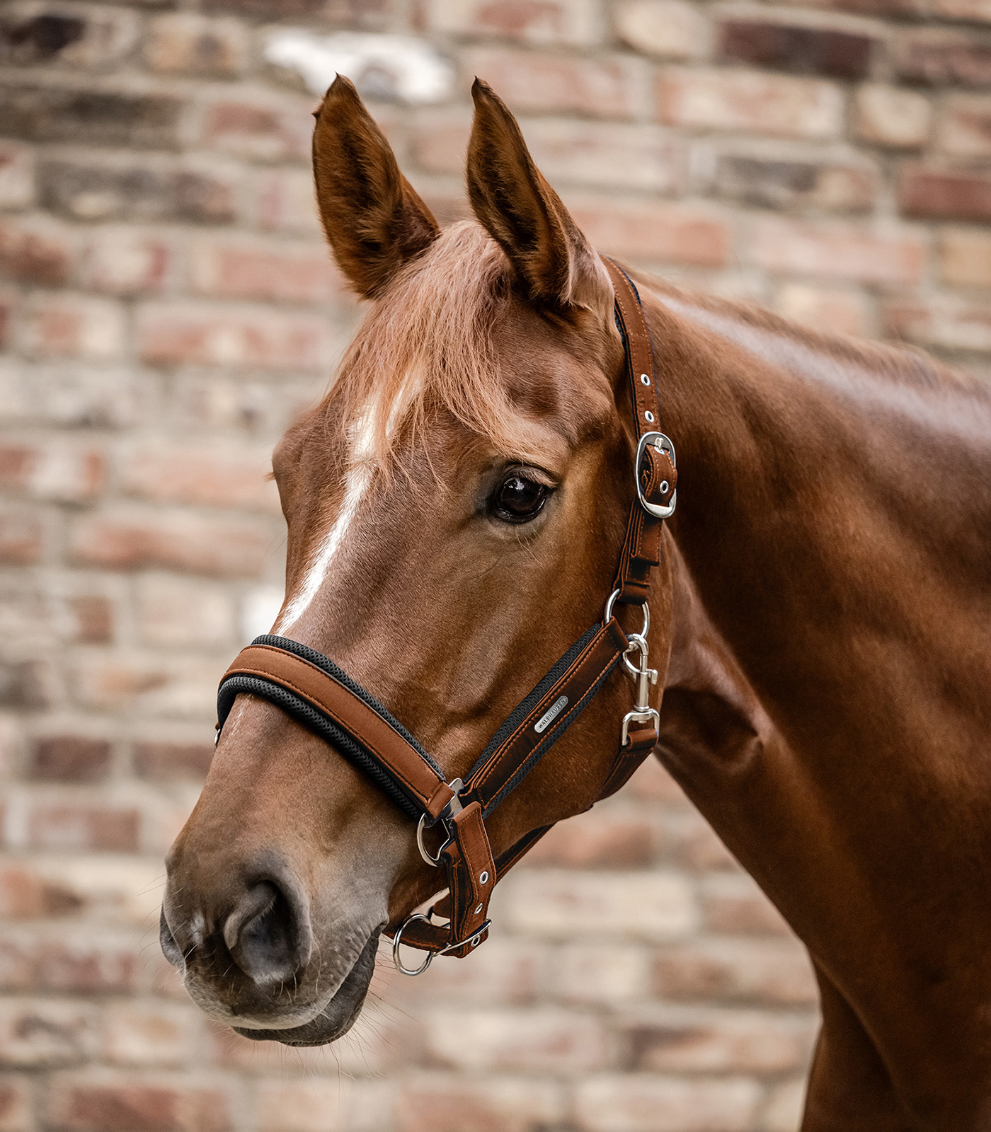 Cabestro de alta calidad con un fino revestimiento de satén. El cabestro está forrado de malla, por lo que es muy cómodo de llevar. Ajustable por ambos lados en la zona del cuello y ajustable por un lado en la zona de la barbilla.