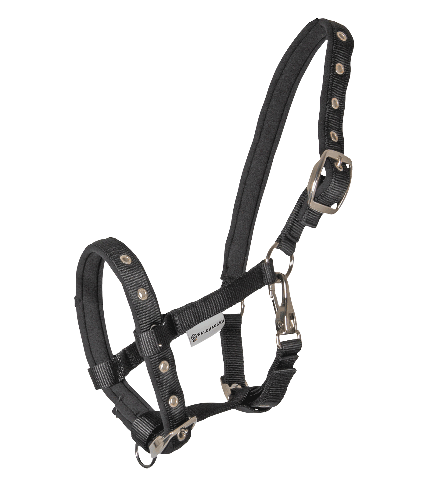 Refinada cabezada para potro con muserola y testera con suave acolchado de neopreno. Hebillas brillosas resistentes. Muserola, ahogadero y testera ajustables para un excelente ajuste.