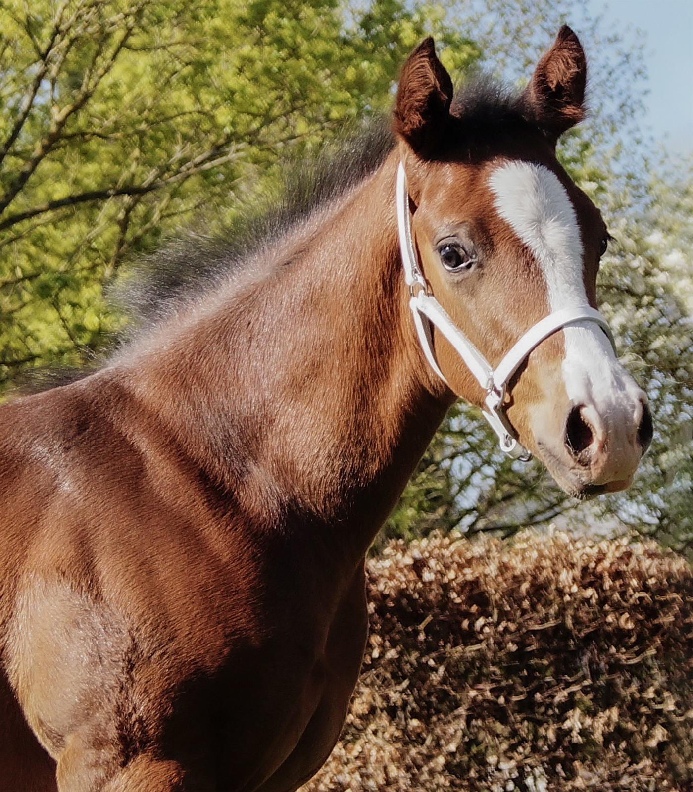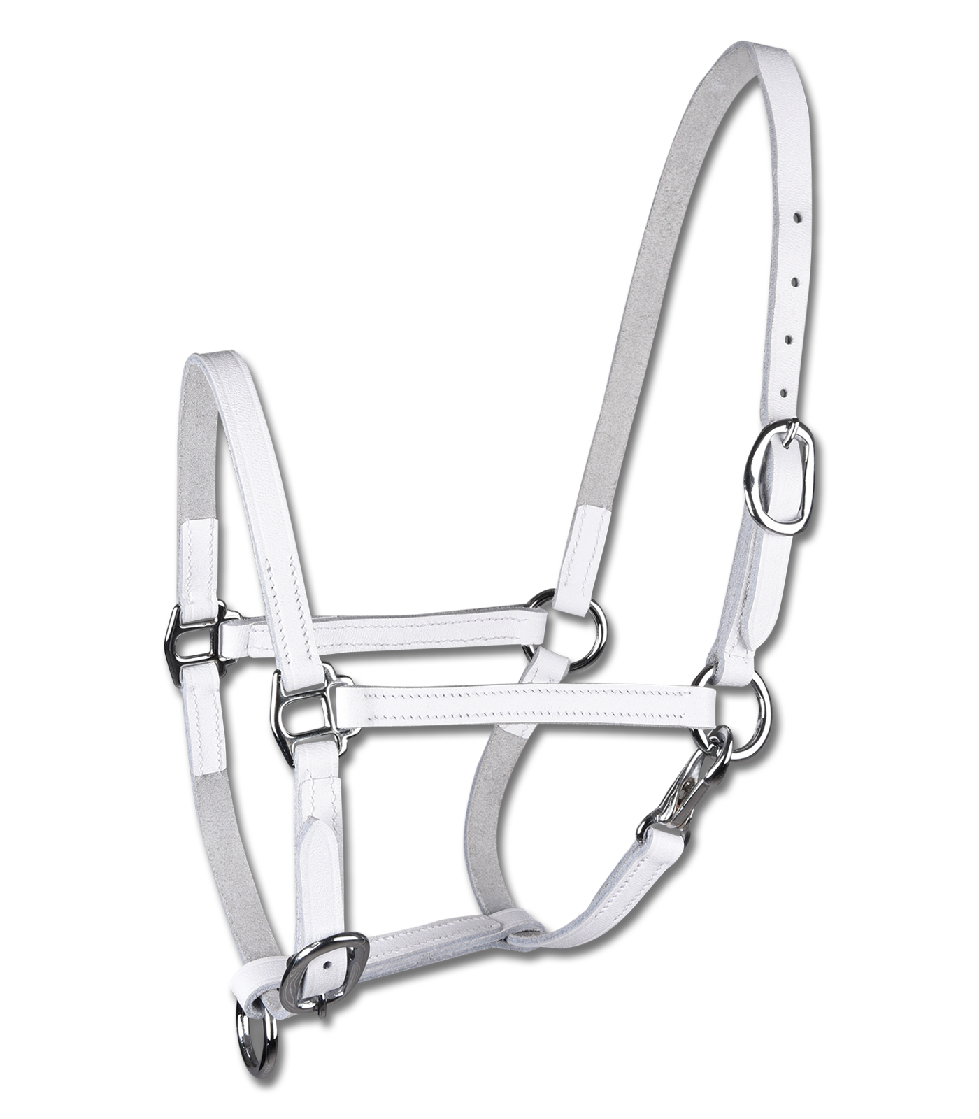 Cabezada de cuero fino para presentar potros. Con mosquetón de carabina para poner y quitar con toda comodidad.