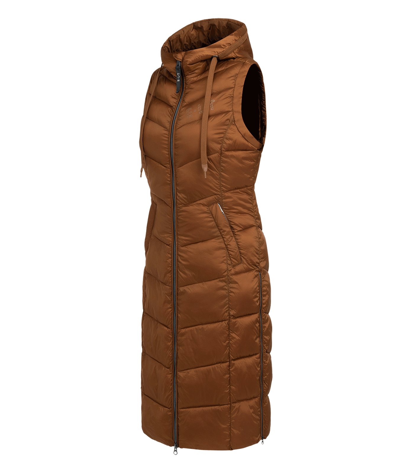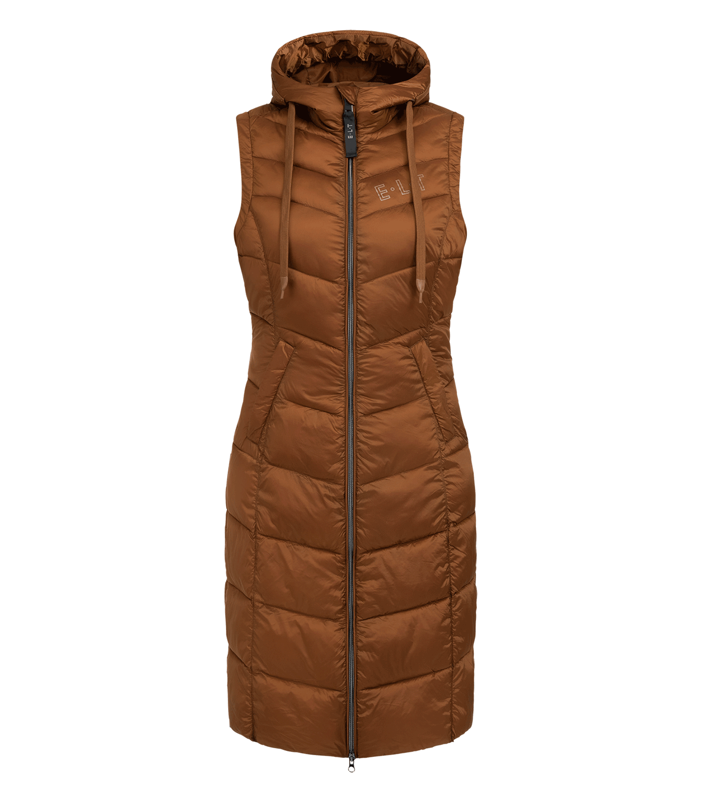 Chaleco largo acolchado con relleno cálido, ultraligero – Corte entallado – Acolchado ligero tipo plumón – Repele el viento – Material de aspecto ligeramente brillante – Capucha integrada en el cuello; se puede fijar en la espalda – Capucha con cordón ajustable y cinta de punto decorativa – Cremallera bidireccional de alta calidad con aspecto metálico y protector de barbilla – Tirador de cremallera metálico con cinta acanalada y logotipo en 3D – Tapeta delantera interior con cinta de punto decorativa y logotipo estampado – Bolsillos laterales con cremallera y tirador metálico de alta calidad – Aberturas laterales de equitación con cremallera de alta calidad y aspecto metálico – Acabado interior acolchado de alta calidad con costuras ribeteadas – Letras E·L·T en la parte delantera Material superior: 100 % poliamida, forro: 100 % poliamida, guata: 100 % poliéster
