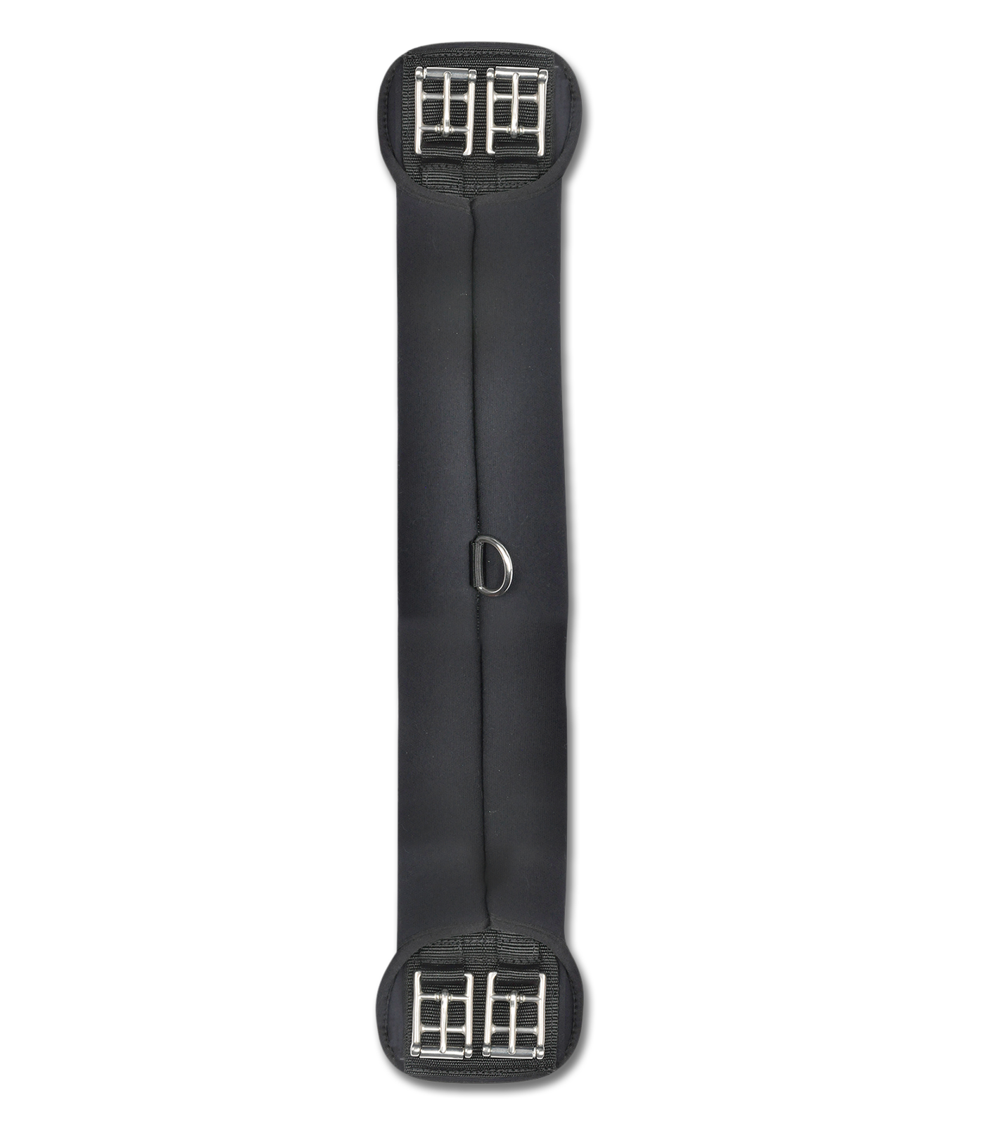 Con material grueso extra suave que se adapta a la perfección a los movimientos del caballo y que previene los puntos de roce y presión. Con hebillas de rodillo de acero inoxidable y anilla central para la sujeción de riendas auxiliares. Sin inserciones elásticas.