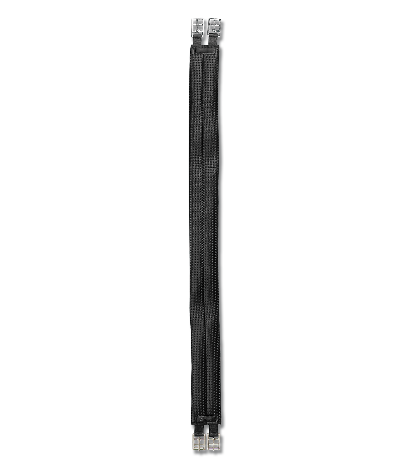 La suave gomaespuma Soft se refuerza en el interior mediante una cinta de tela ancha de nailon muy resistente al desgarre. Las inserciones elástica garantizan flexibilidad y aún más confort, de modo que la cincha se adapta a cualquier movimiento. Con hebillas de rodillo de acero inoxidable.