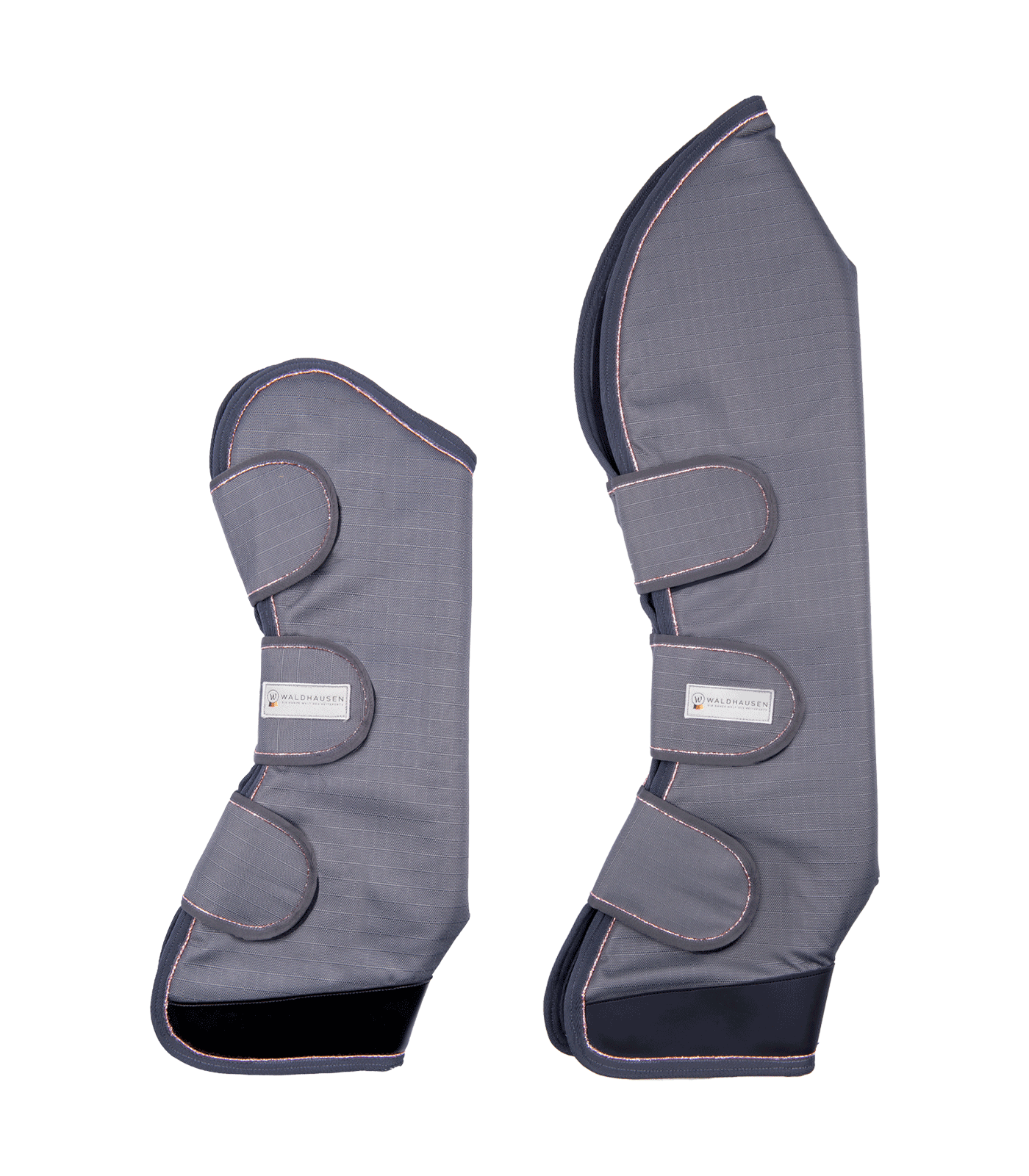 Protectores de transporte de forma anatómica con tres resistentes cierres de gancho y bucle para un perfecto ajuste a la pata del caballo. Máxima protección gracias a la gomaespuma exterior de 1,5 cm de espesor que amortigua los golpes y al corte alto. Suave forro interior polar para un perfecto ajuste. Exterior extra fuerte con refuerzo a la altura de los bulbos. Material: 100 % poliéster Forro: 100 % poliéster