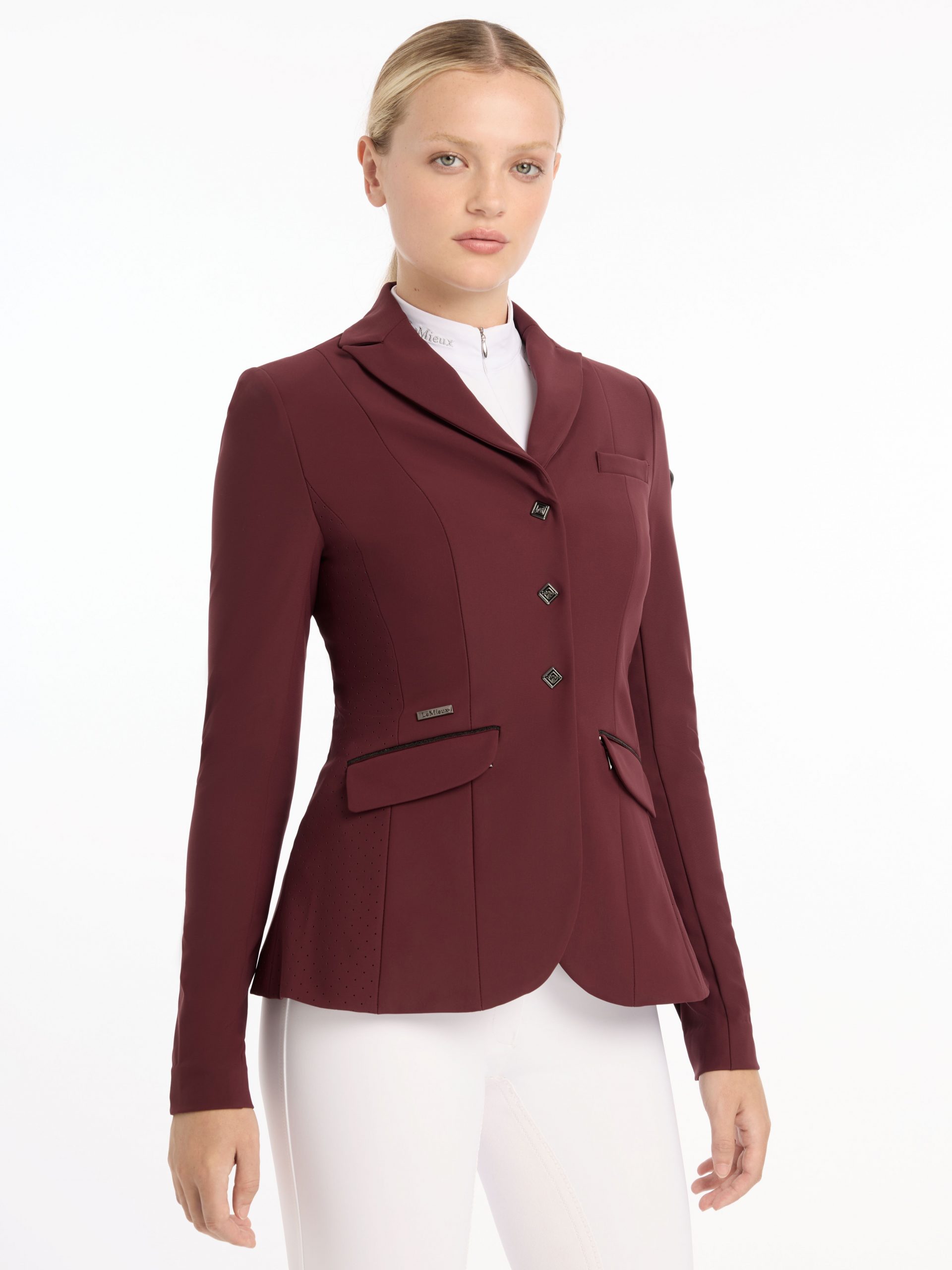 La impresionante nueva chaqueta Dynamiqué Show ha sido diseñada teniendo en cuenta el rendimiento de su competencia. Los paneles laterales ventilados y el revestimiento de la malla deportiva al frente proporcionan la respiración final, combinada con un estiramiento y recuperación superiores para que el jinete no esté restringido y sea libre de moverse. Un sutil bordes de cuentas en los bordes de bolsillo y el panel de la correa trasera agregan un toque de brillo de lujo y crea una silueta y una apariencia elegante. Aplicado con una cremallera frontal y un semental de prensa Lemieux personalizado para una practicidad impresionante, esta chaqueta de exhibición es imprescindible para todos los jinetes de la competencia.