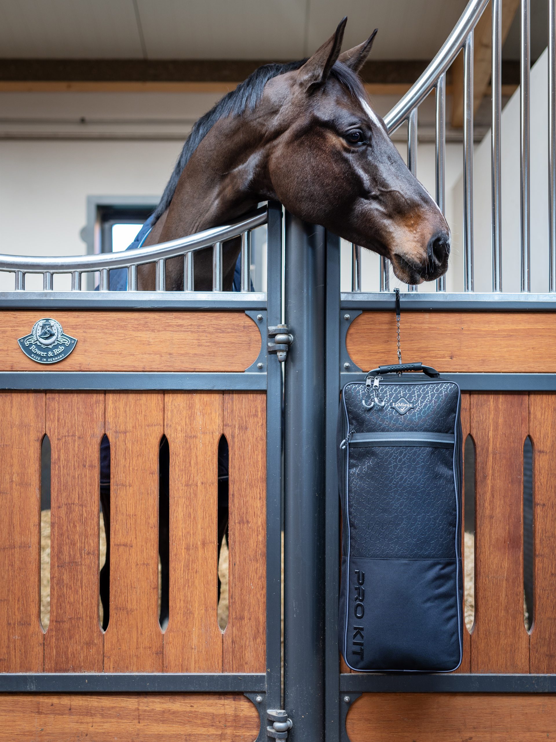 Cuando sus bridas no están en uso, esta bolsa totalmente impermeable con un compartimento de colgar interno lo mantendrá seguro y seguro. La bolsa de brida Lemieux Elite Pro es una forma inteligente de mantener sus bridles ordenadas, ordenadas y limpias. Una gran adición al kit de viaje de cualquiera, está hecho de un fuerte nylon negativo impermeable que puede soportar una paliza cuando estás en movimiento. La bolsa presenta un compartimento colgante interno con una cremallera segura y un mango de agarre acolchado para mayor comodidad. También hay dos opciones colgantes que le permiten maximizar el espacio cuando está en casa.