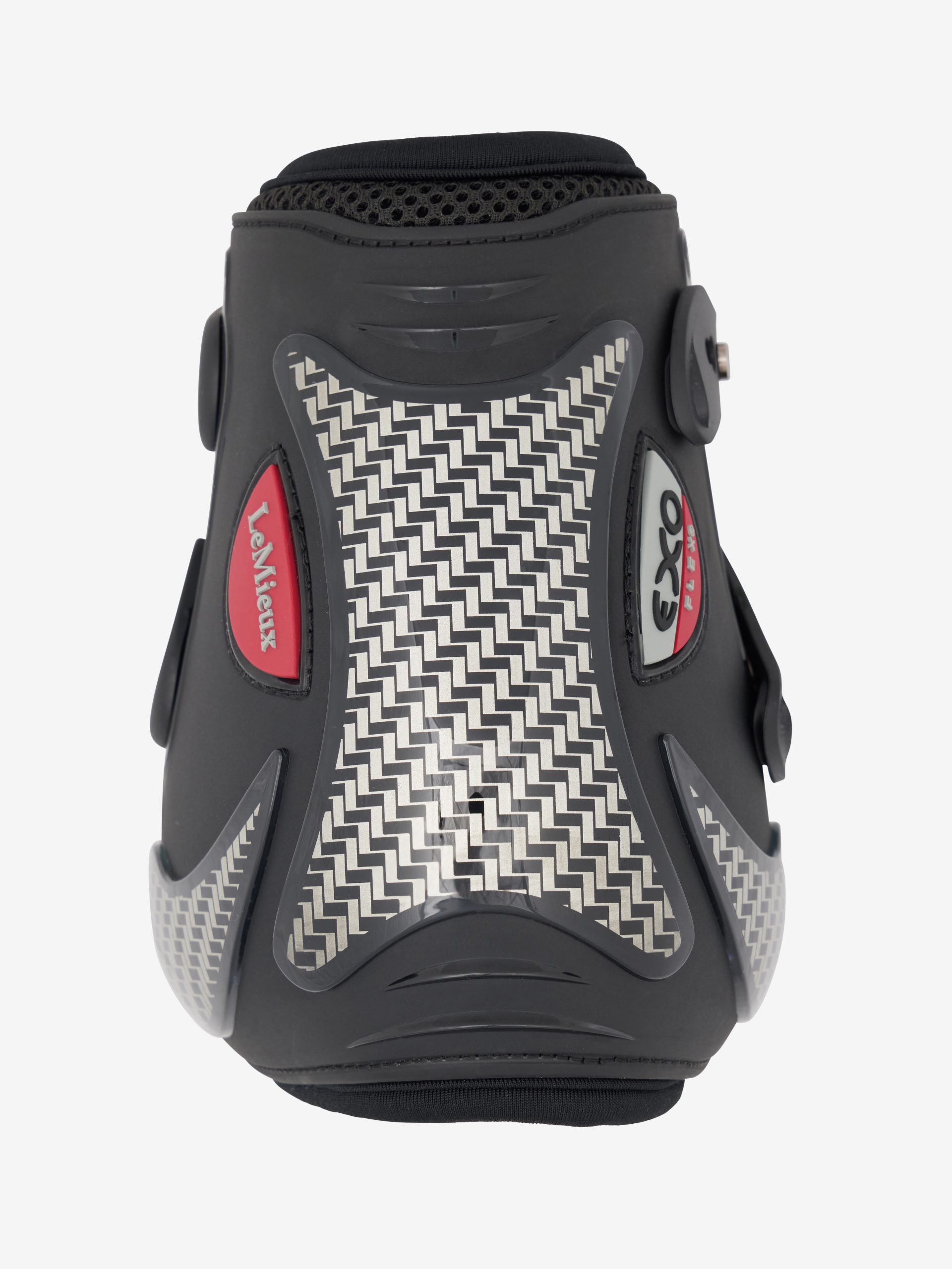 La cubierta esquelética externa de Exo-Flex® proporciona protección esencial con sus protectores de ataque de carbono en la parte trasera del tendón y el lado de la articulación. Integrado en el cuerpo de la bota se encuentra una capa de espuma biométrica de cartílago artificial ACF® que absorbe y disipa hasta el 90% del impacto de la fuerza de su aterrizaje de caballos después de un salto, o desde un golpe directo en el maletero. Los contornos de neopreno dinámicos perforados internos admiten el tendón y el fetlock con bambú transpirable y revestimiento interno de nylon de enfriamiento y malla 3D externa. Las ventilaciones orientadas hacia adelante obligan al aire entrante para circular y enfriar los tendones, mientras que las ventilaciones superiores liberan el calor creciente. De perfil, estructura y peso mínimos, estas son botas de salto ideales, evitando el volumen innecesario en el punto de pasar sobre un poste. Los anchos de correa giratoria de 25 mm y 30 mm son intercambiables con tres opciones de longitud para un ajuste preciso.