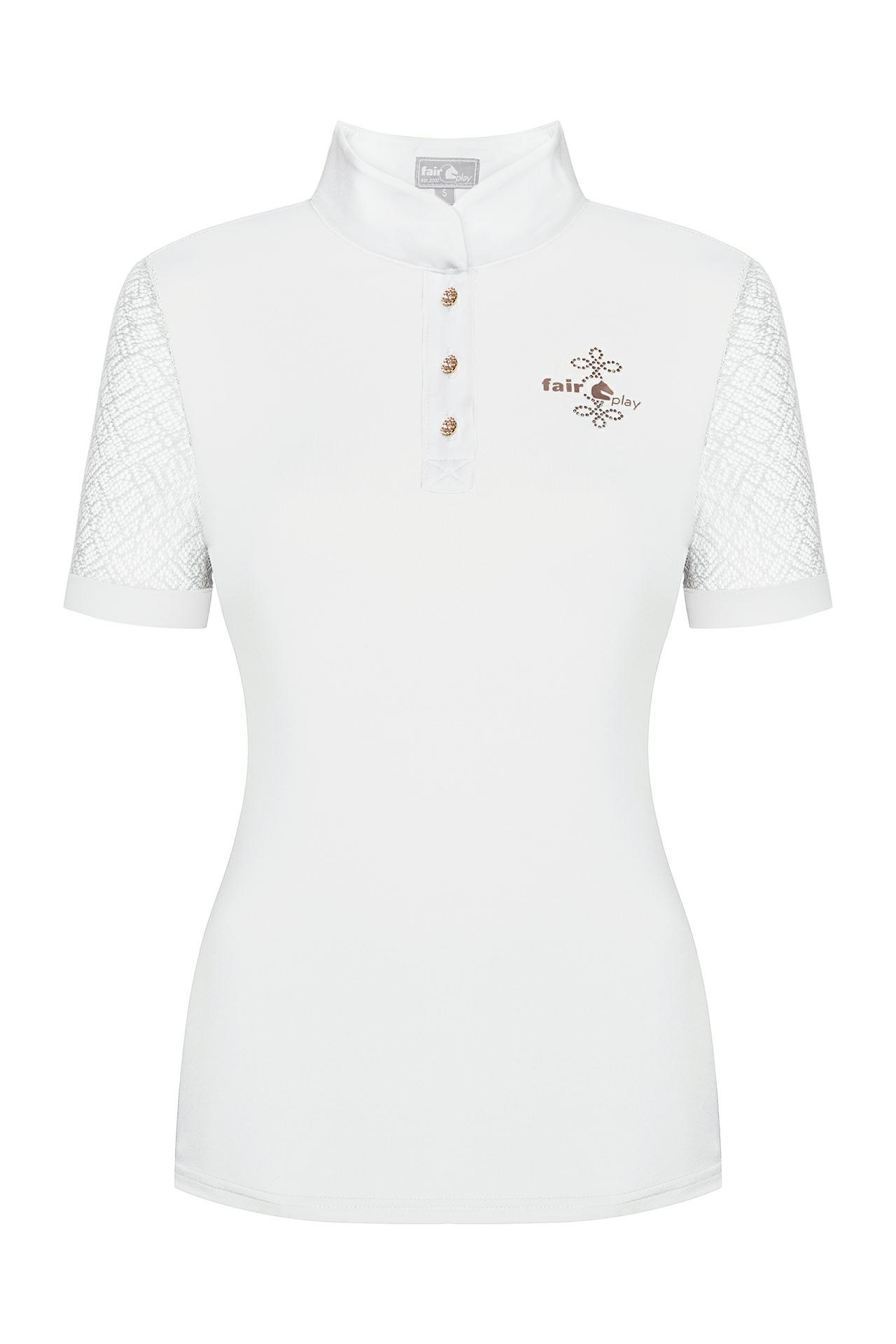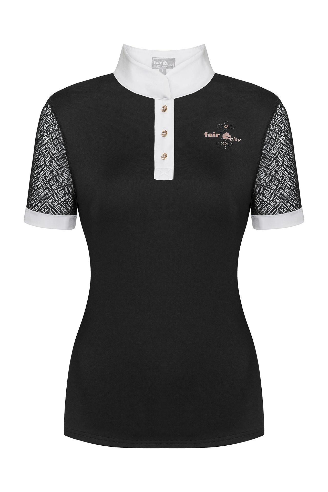 • Elegante y muy femenina • Confeccionada con un tejido técnico elástico, transpirable y que absorbe la humedad con protección UV • Se cierra con botones decorativos • Inserciones de encaje elástico para aumentar el flujo de aire • Dos aplicaciones decorativas en oro rosa
